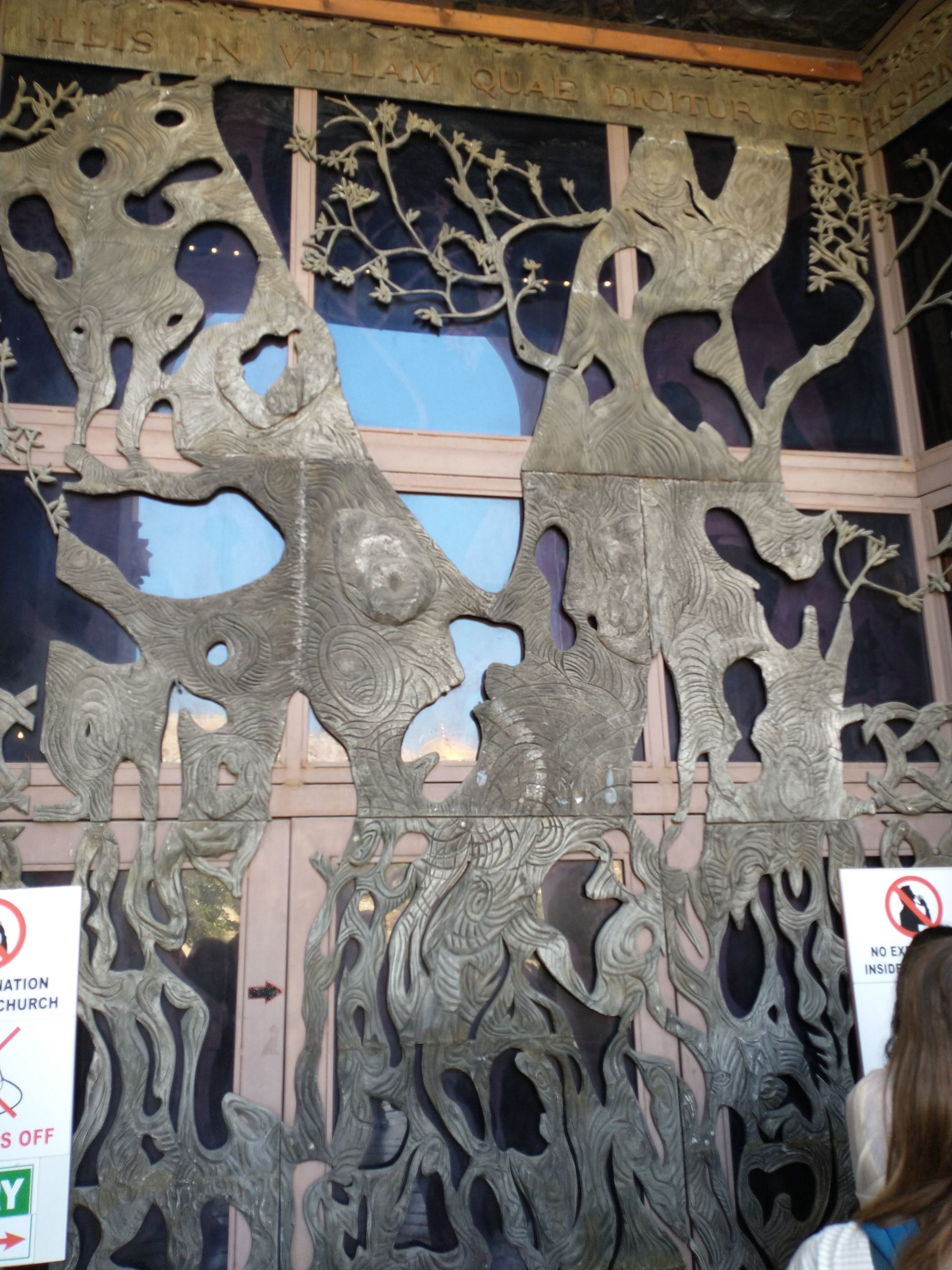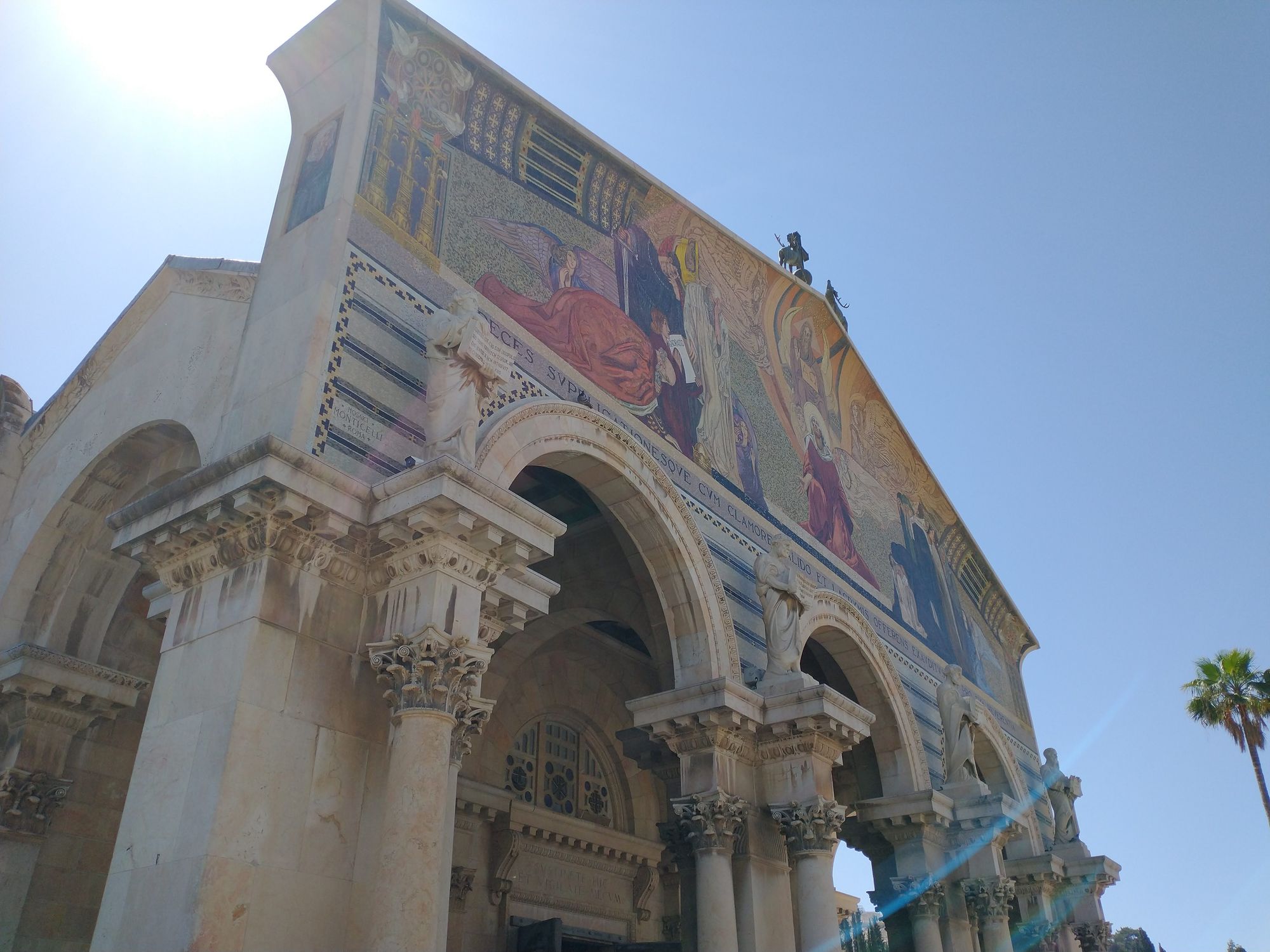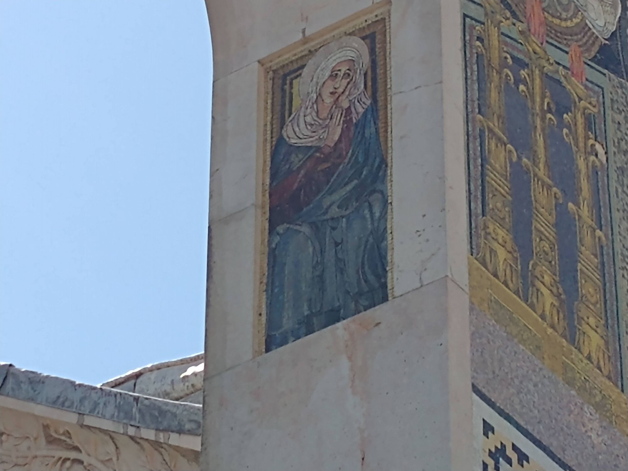 The Church of All Nations is in the Garden of Gethsemane. And has this mosaic on the outside: