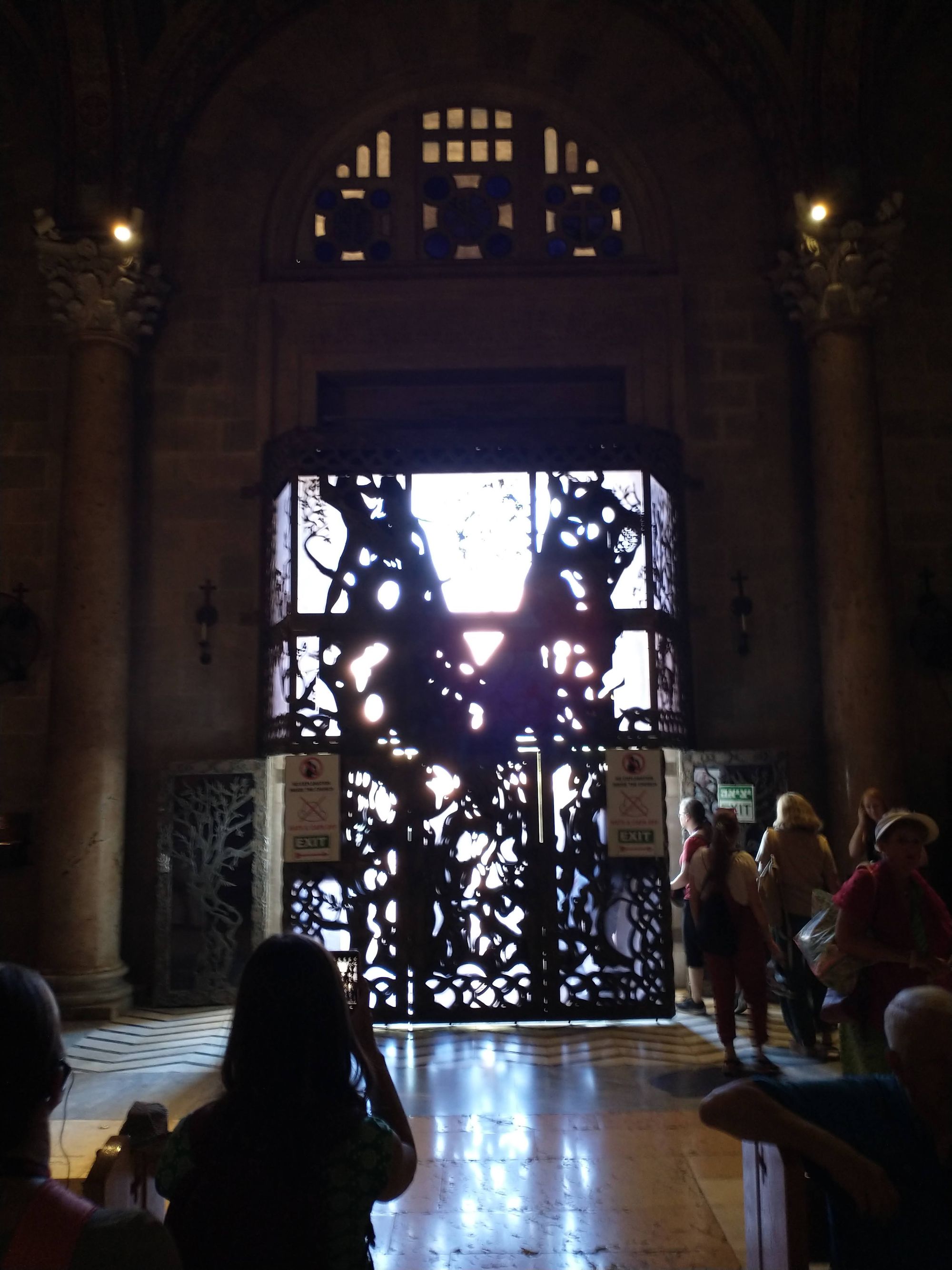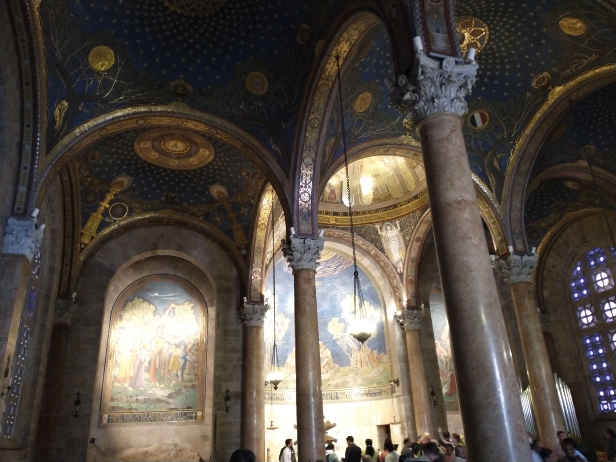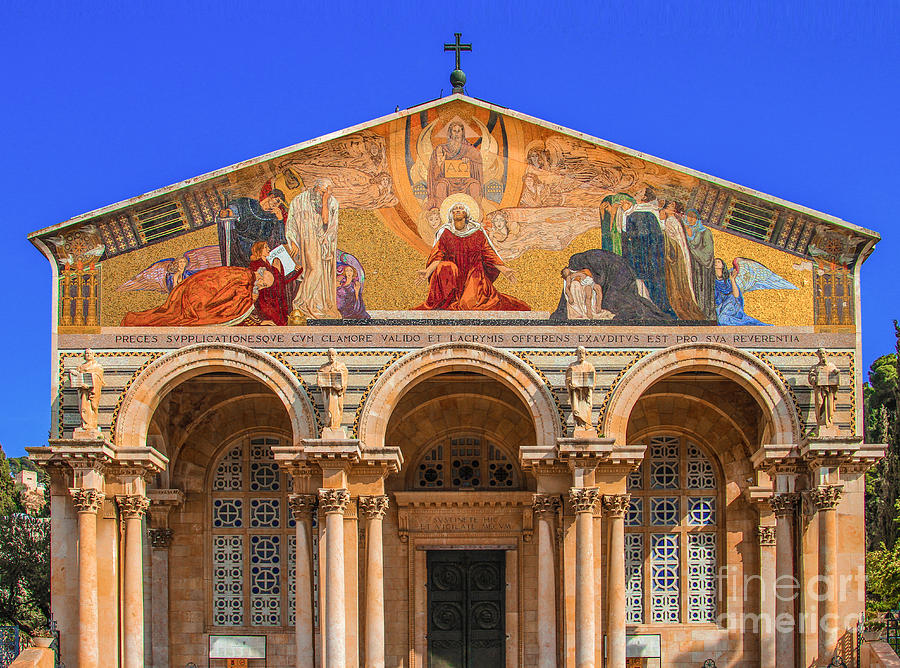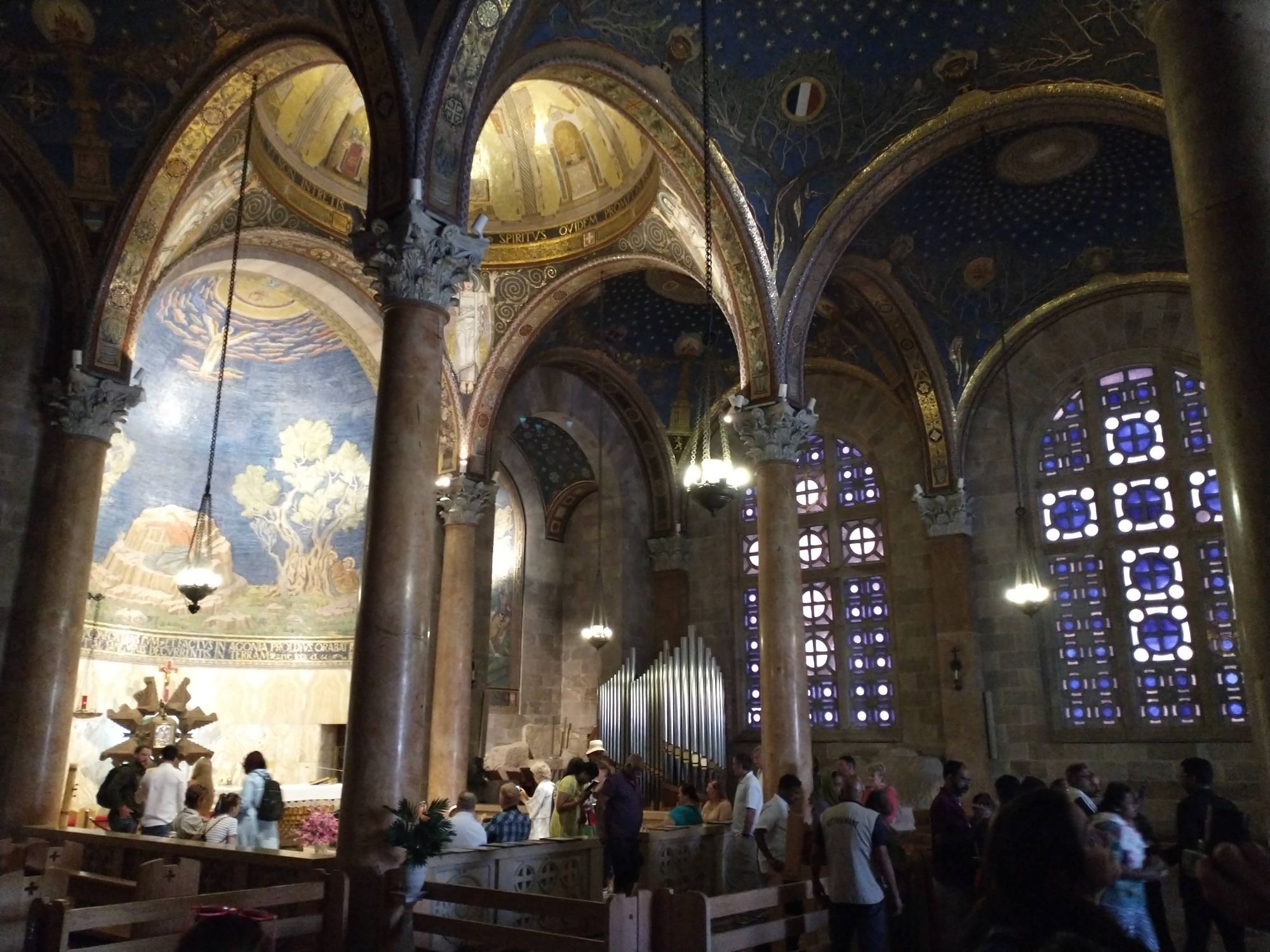 The building is also called the Basilica of the Agony because it's the place where Jesus prayed before his crucifixion in Mark 14. Jesus was in so much agony that he sweat blood.