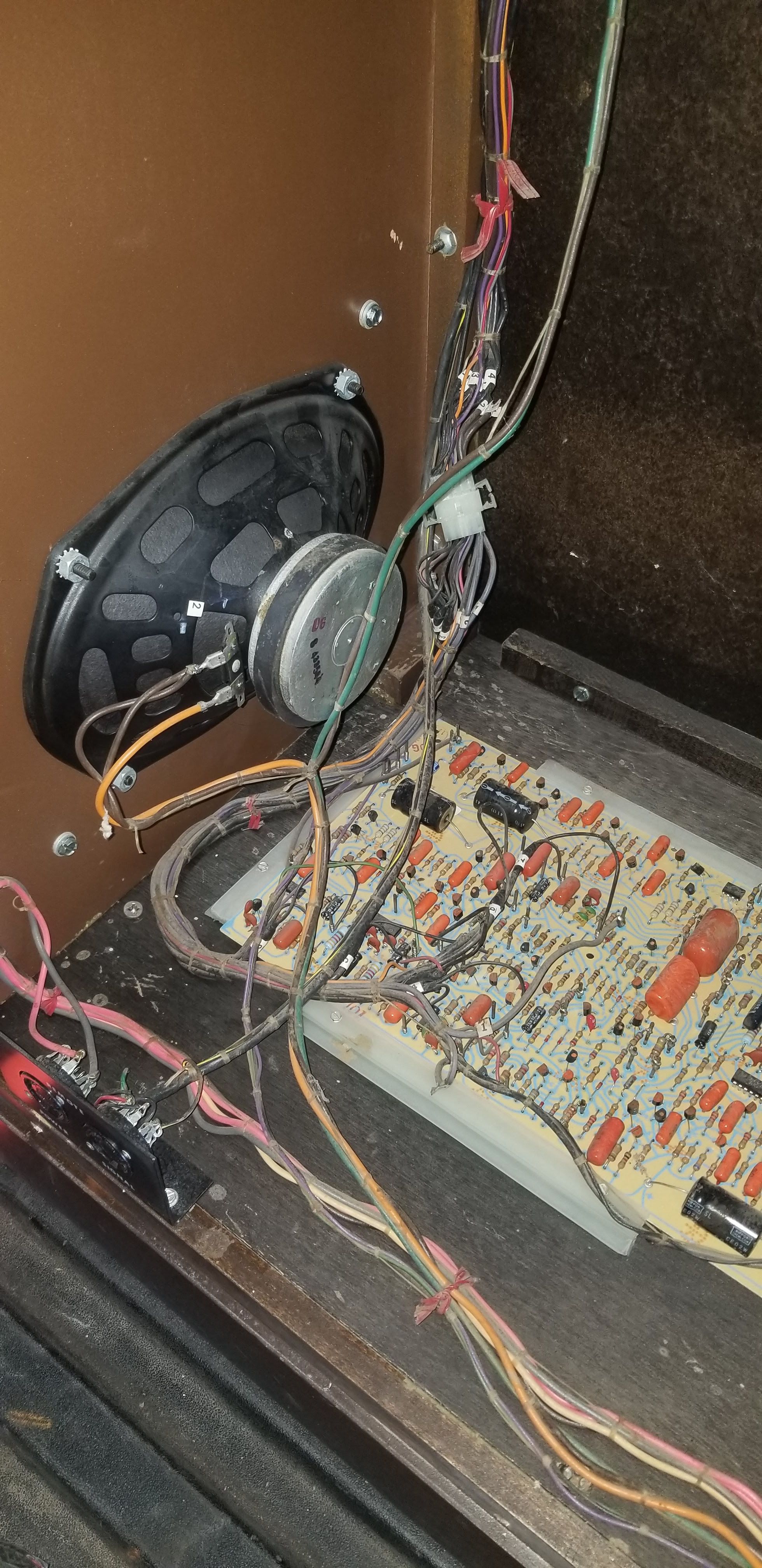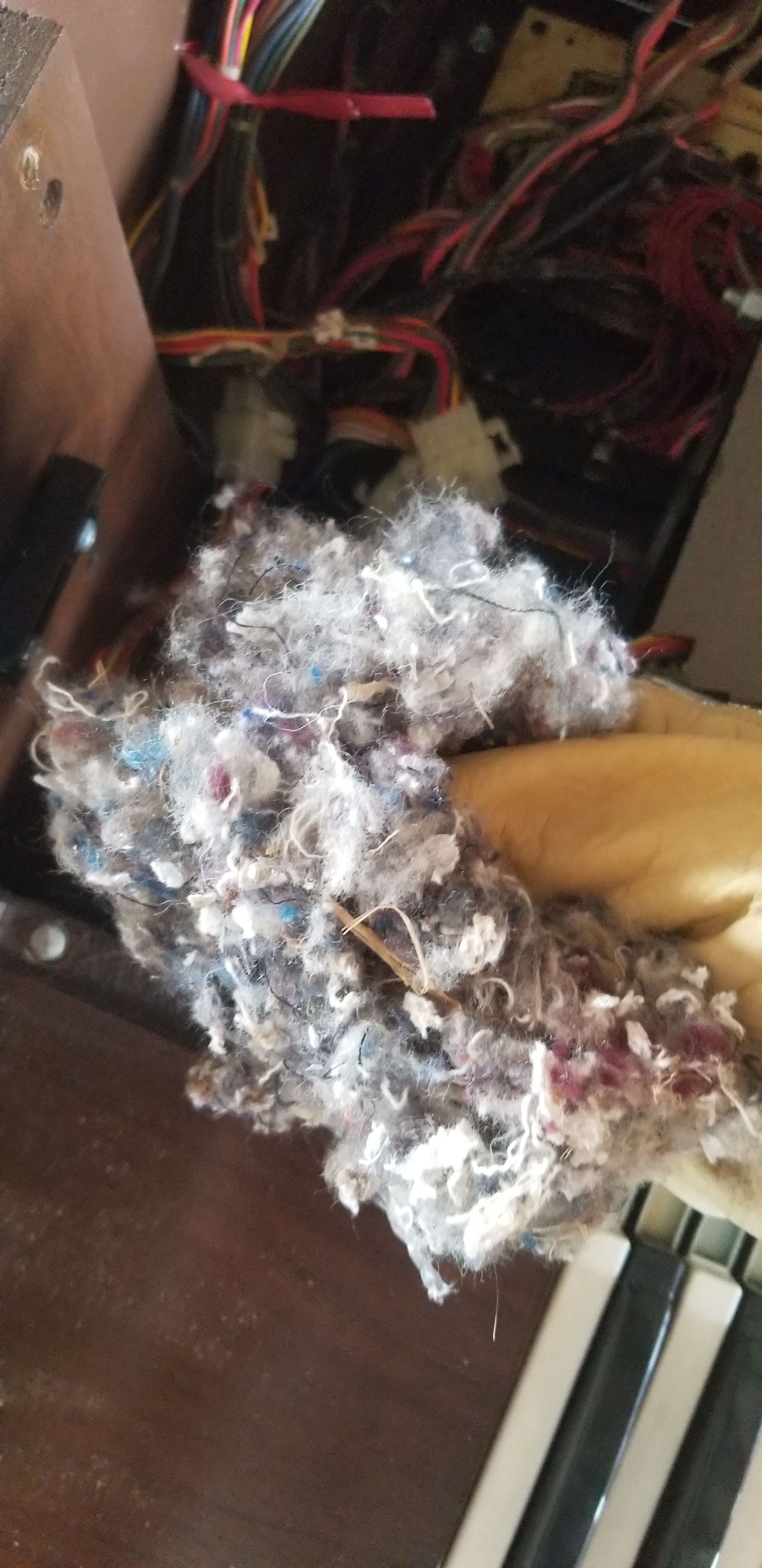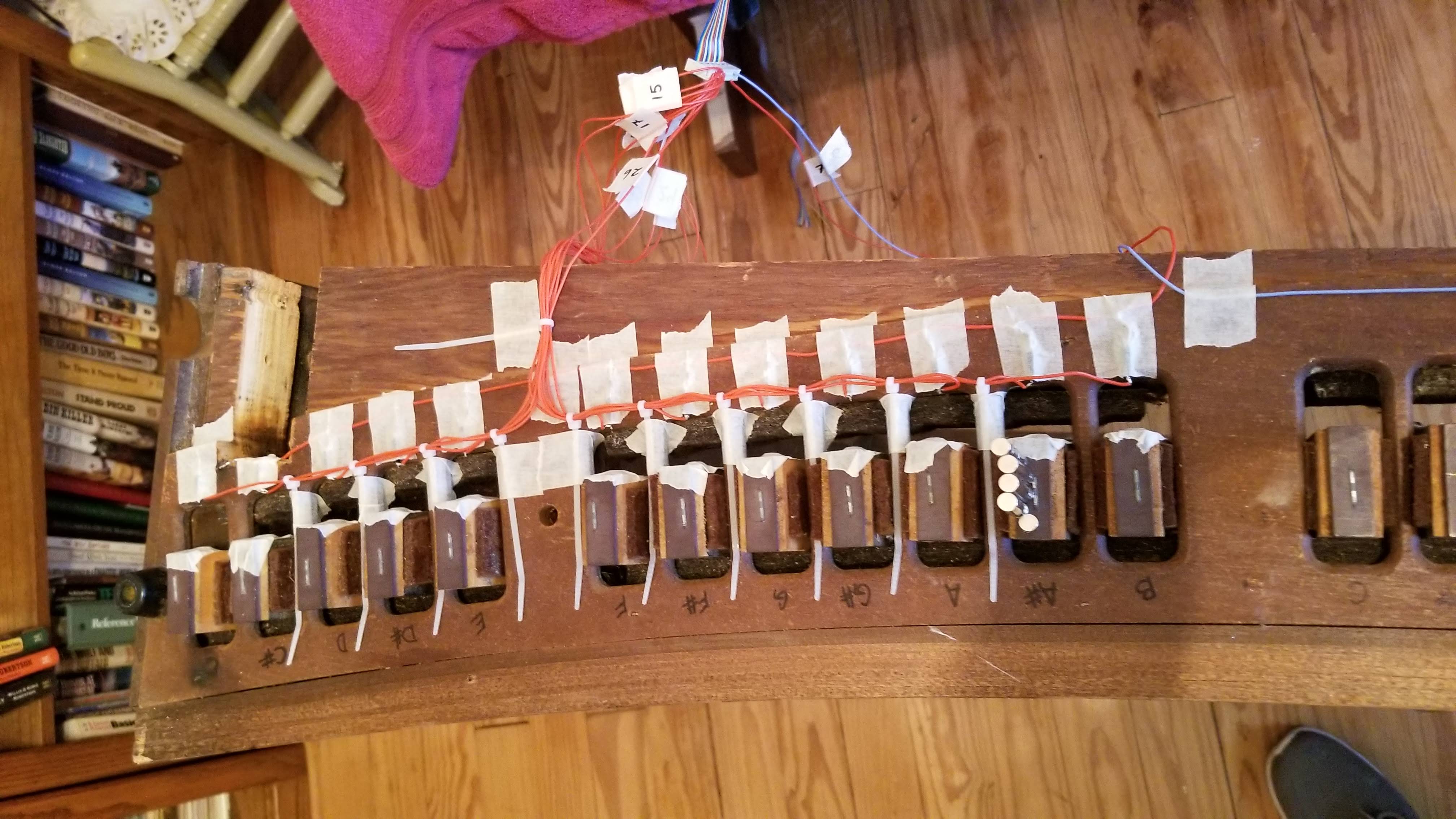 Yes, I used masking tape to hold on some of the electronics. You also see that I had a spectacular helper when I used a jigsaw to cut out huge chunks of the organ cabinet.