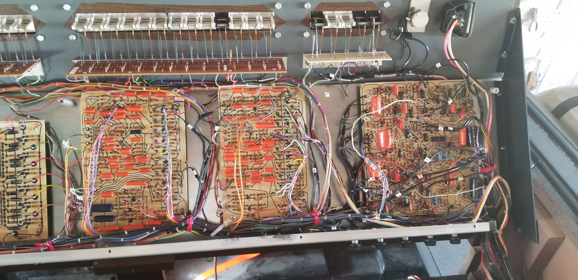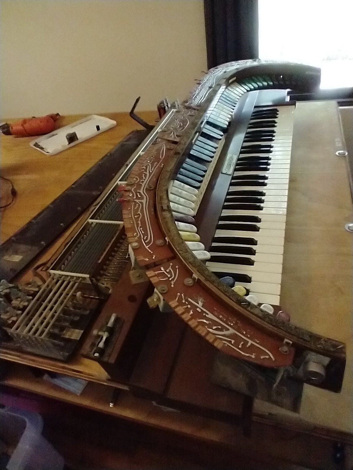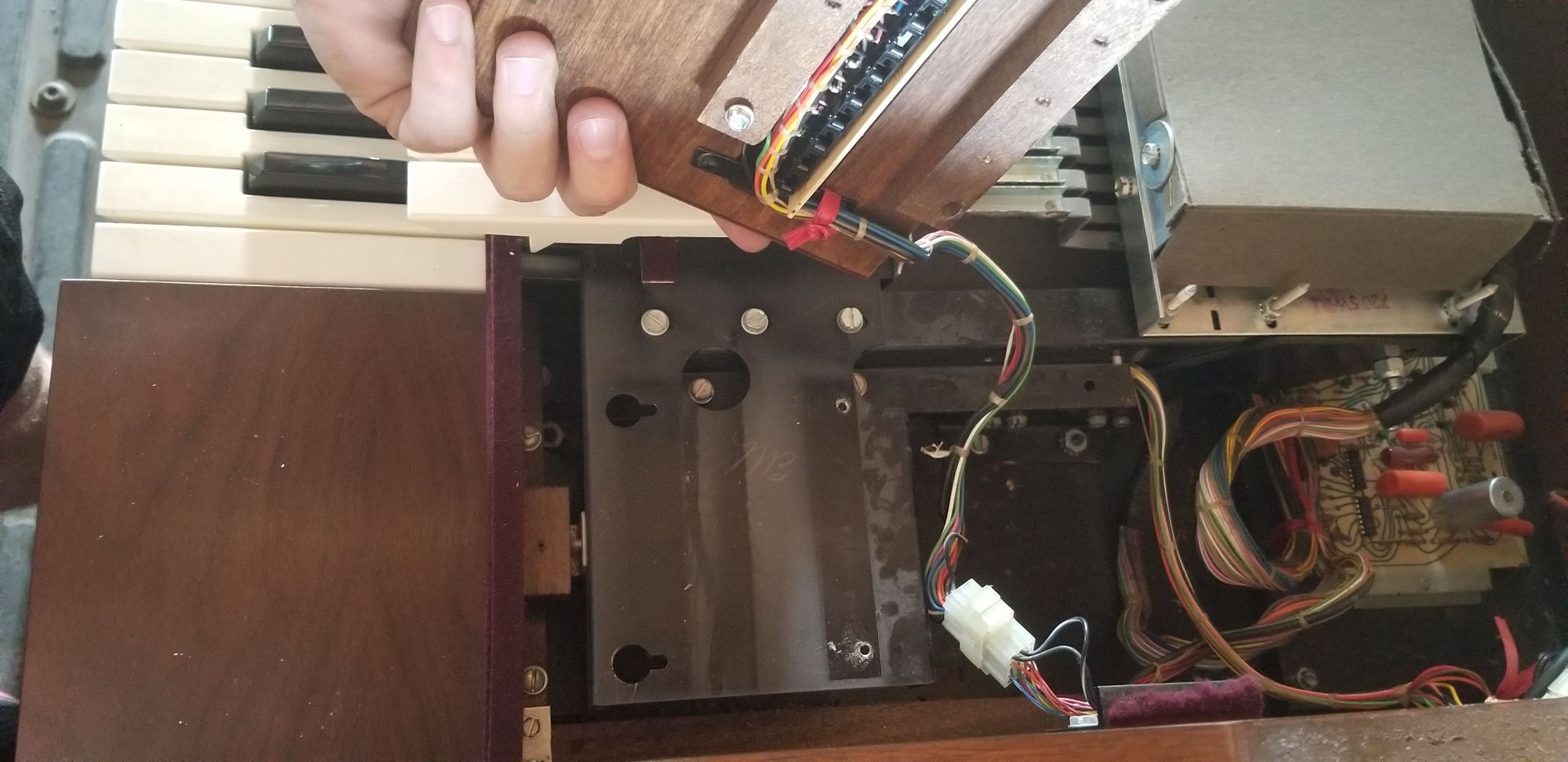 A friend of mine had an old digital organ to get rid of. Without telling my family, I drove across Texas to go pick it up and brought it home. Here're some pictures of me taking out all the old, analog-electronic guts: