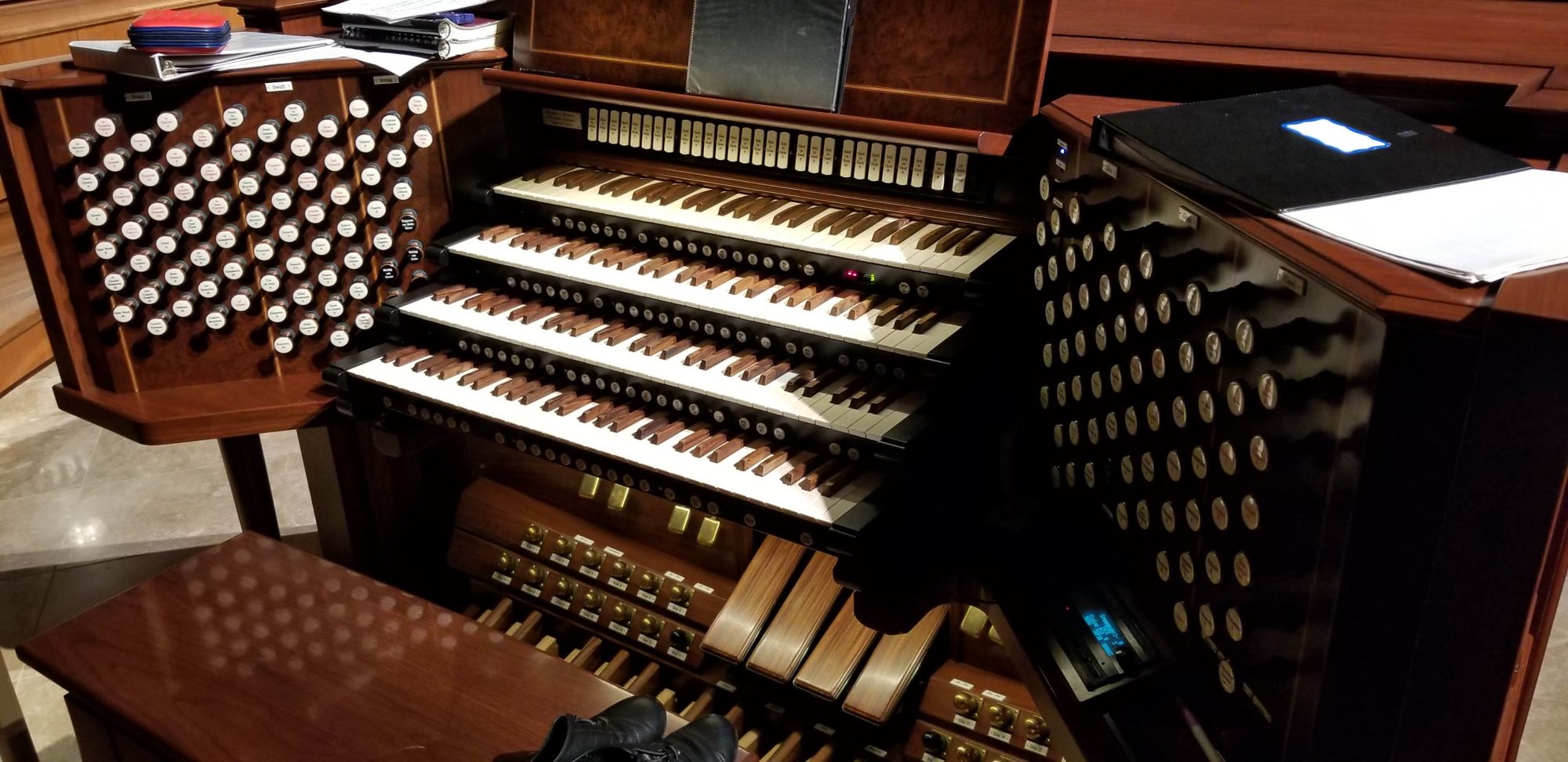 For those unfamiliar with the instrument, organs tend to be quite stationary. Much like mainframe computers of the past, they often take up entire rooms–sometimes even multiple rooms! Another similarity they have to mainframe computers is that you have to sign up for a time slot to actually use them because they're shared with all the other organists in the area.