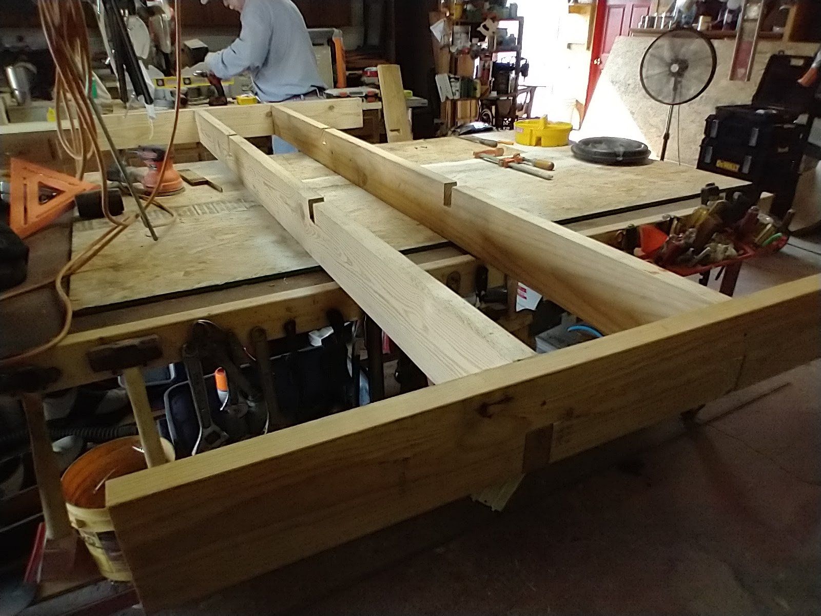 In the blurry image below, it seems to me that my boards are bowed beyond my abilities to fix, so I phoned a friend (a friend who's a really good carpenter)!