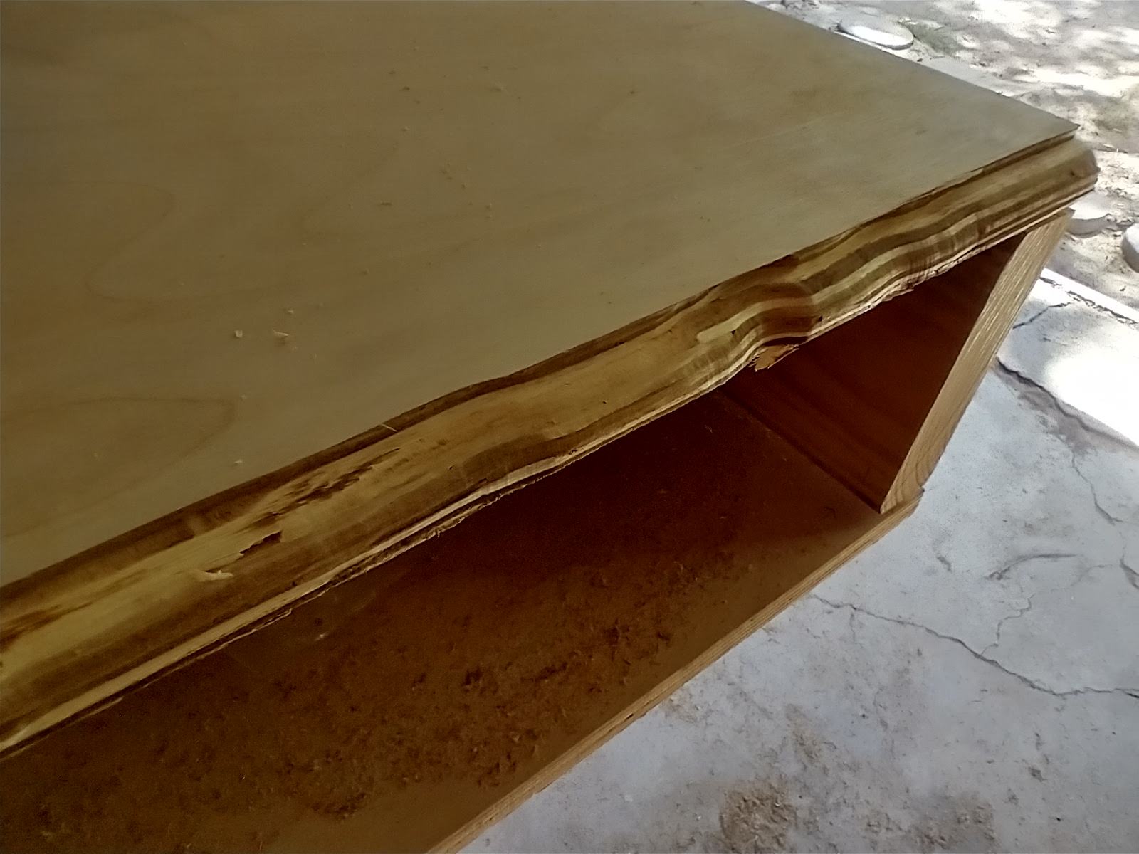 Fortunately, I was surrounded by my super supportive family at the time and they helped me come up with a solution. I used some wood putty to rebuild the edge, then routed it back down to be smooth. Overall, I'm very pleased with the results: