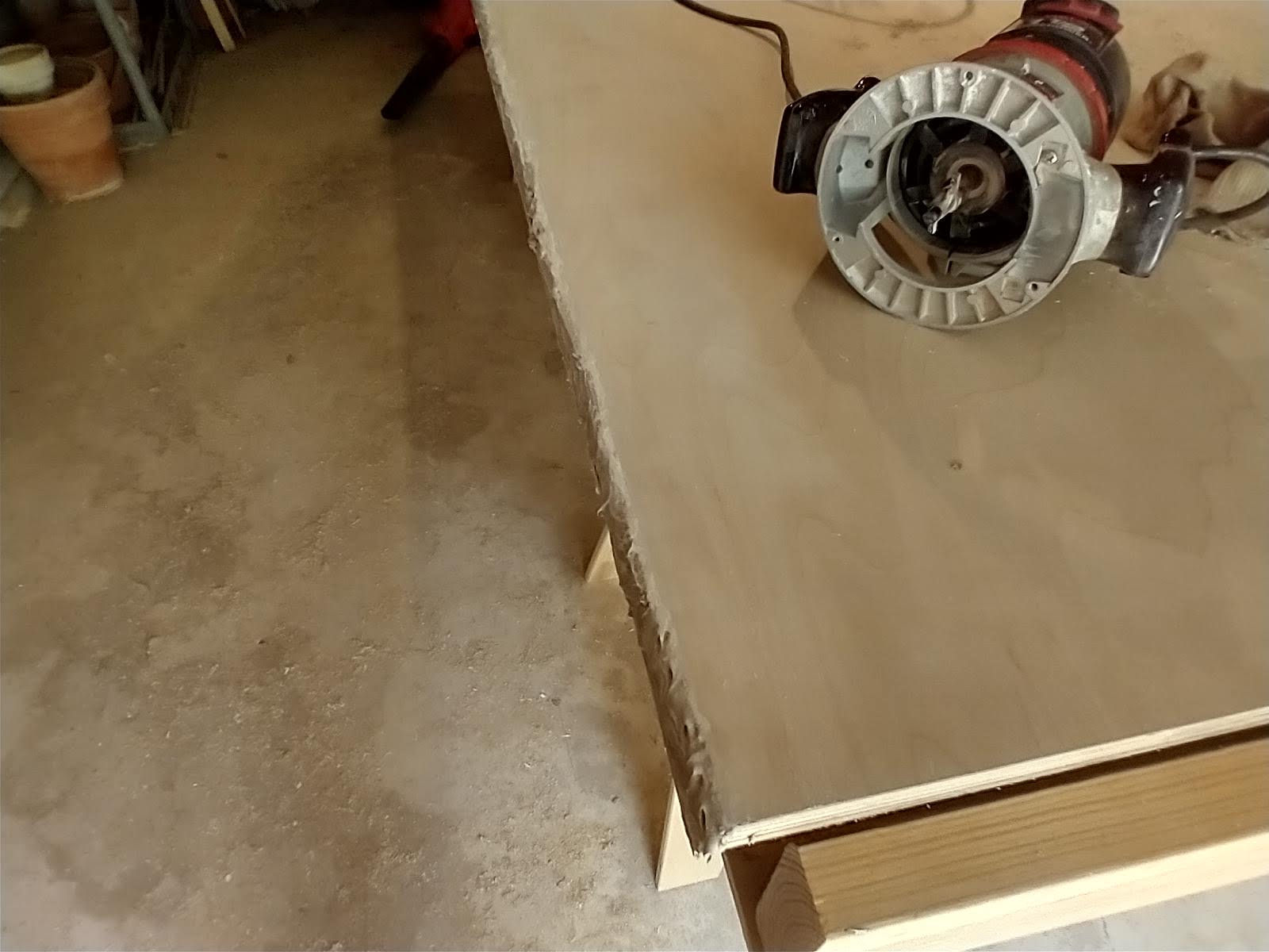 However, when we put my boards on his level table we discovered that they aren't warped at all: the floor of my garage was the problem!