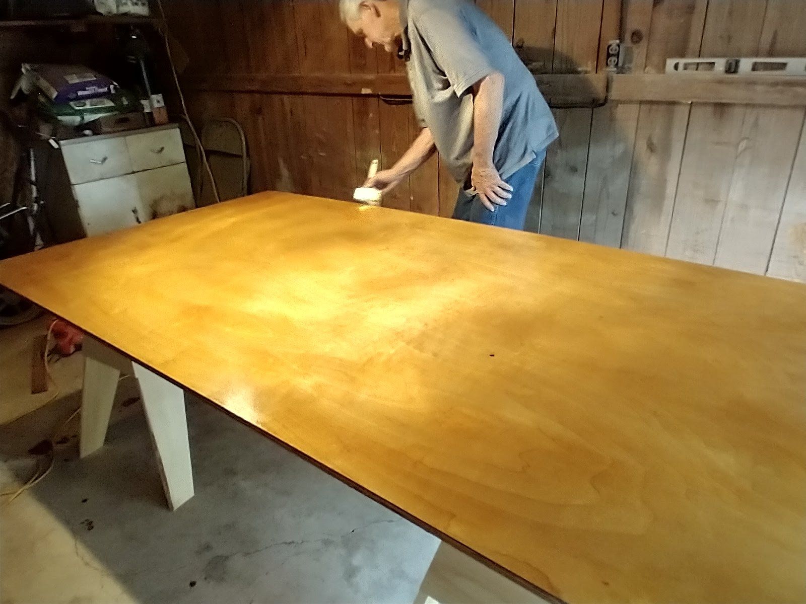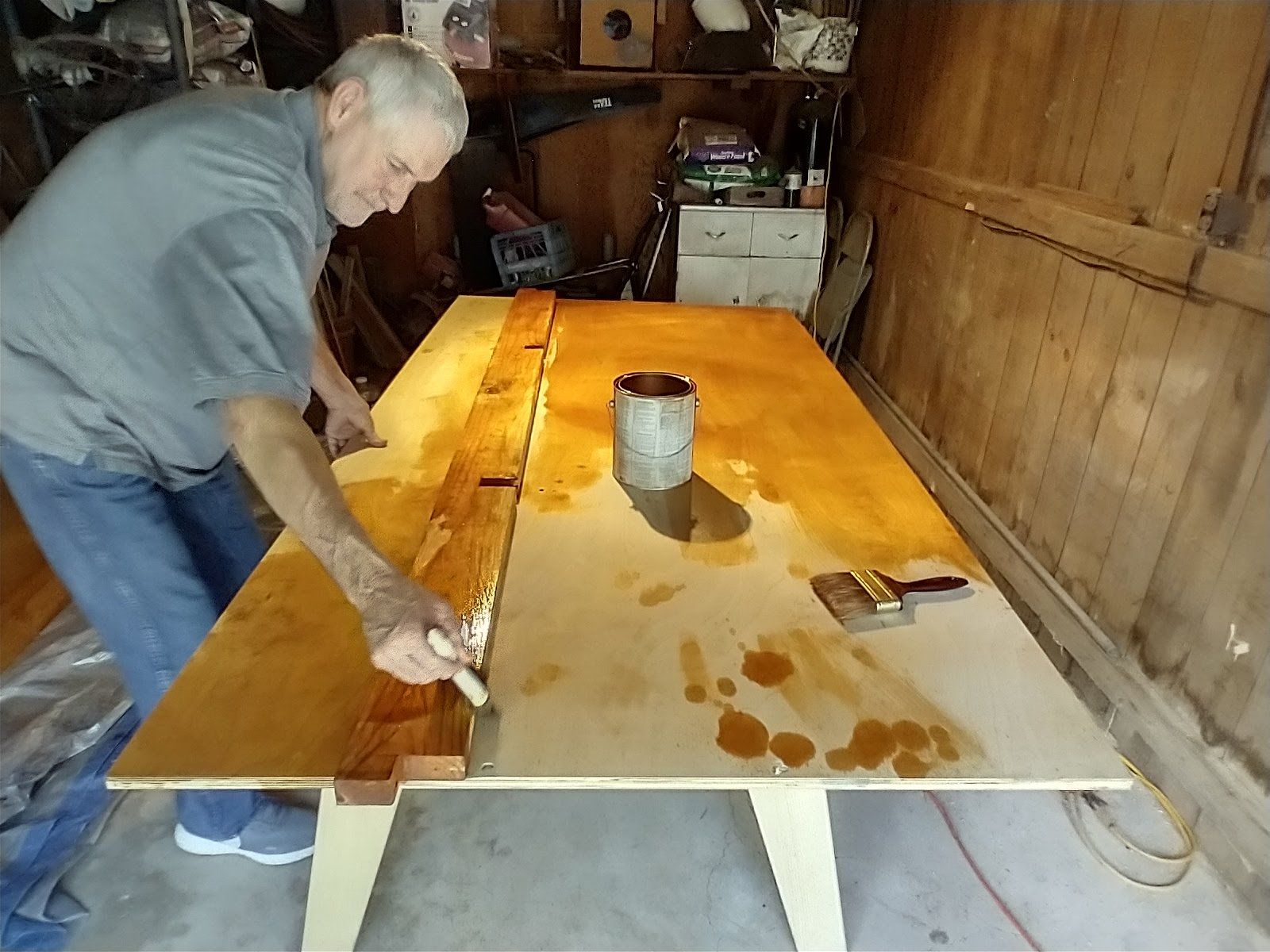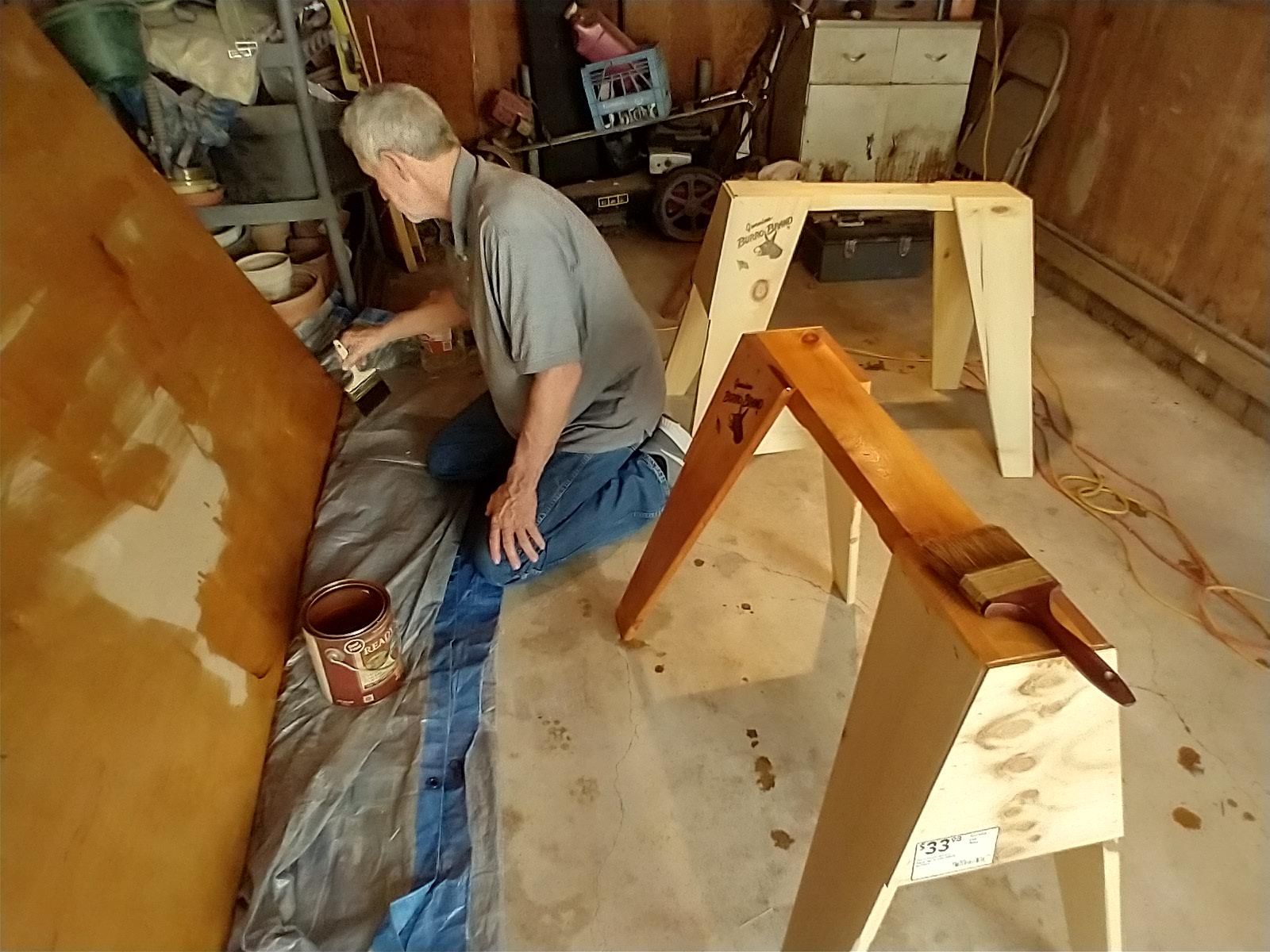 My dad and I worked together to stain the whole table. All in all, this was an awesome project!