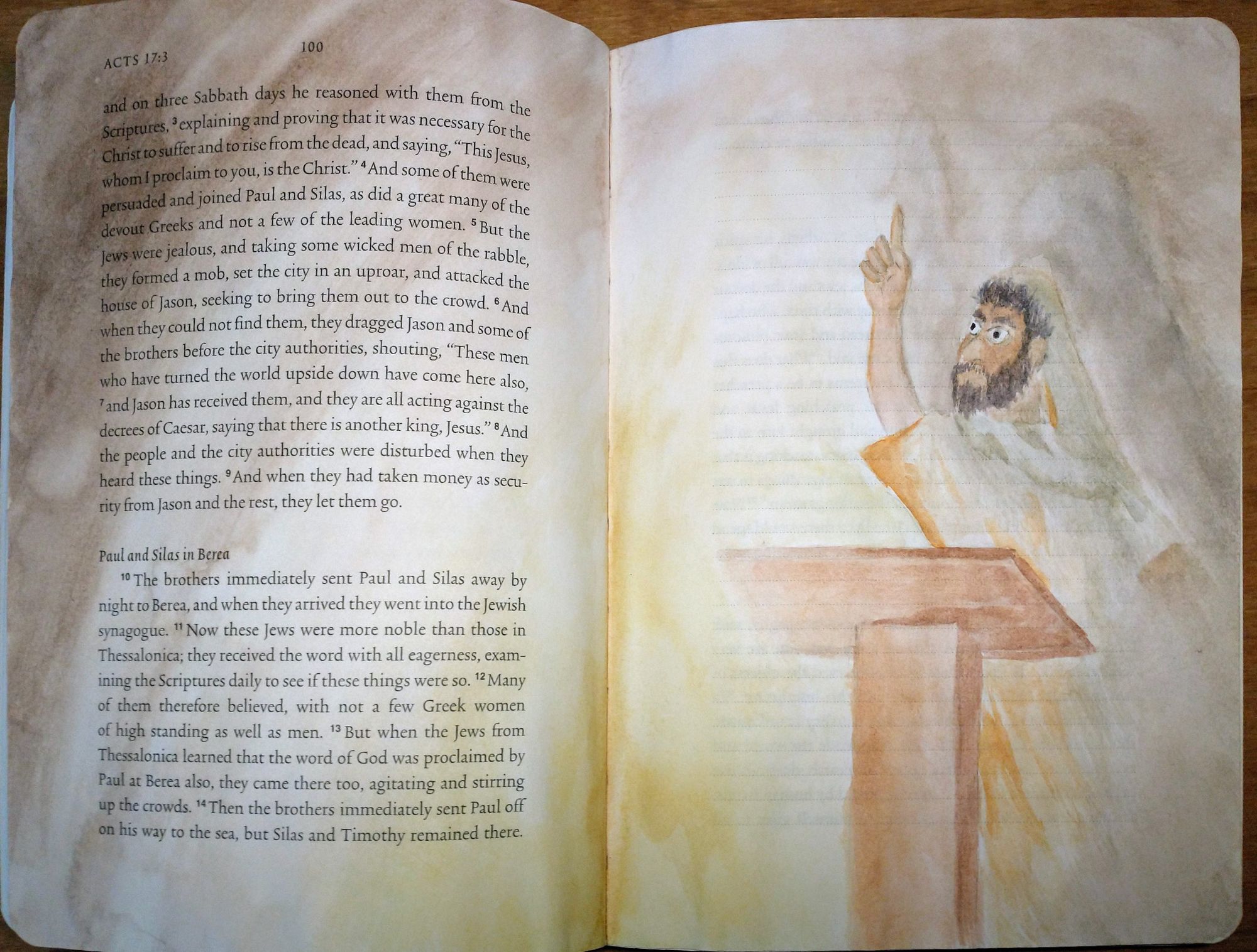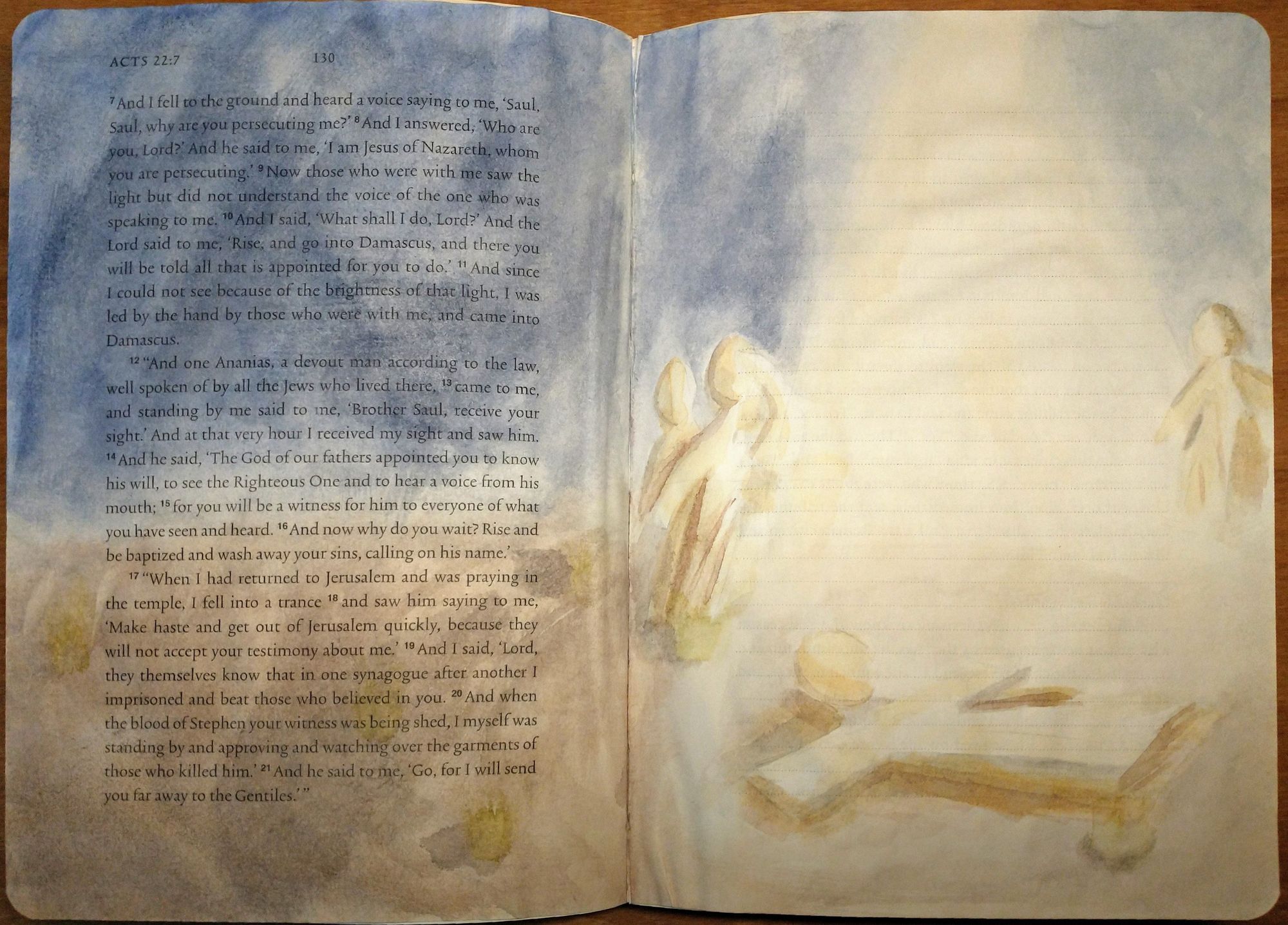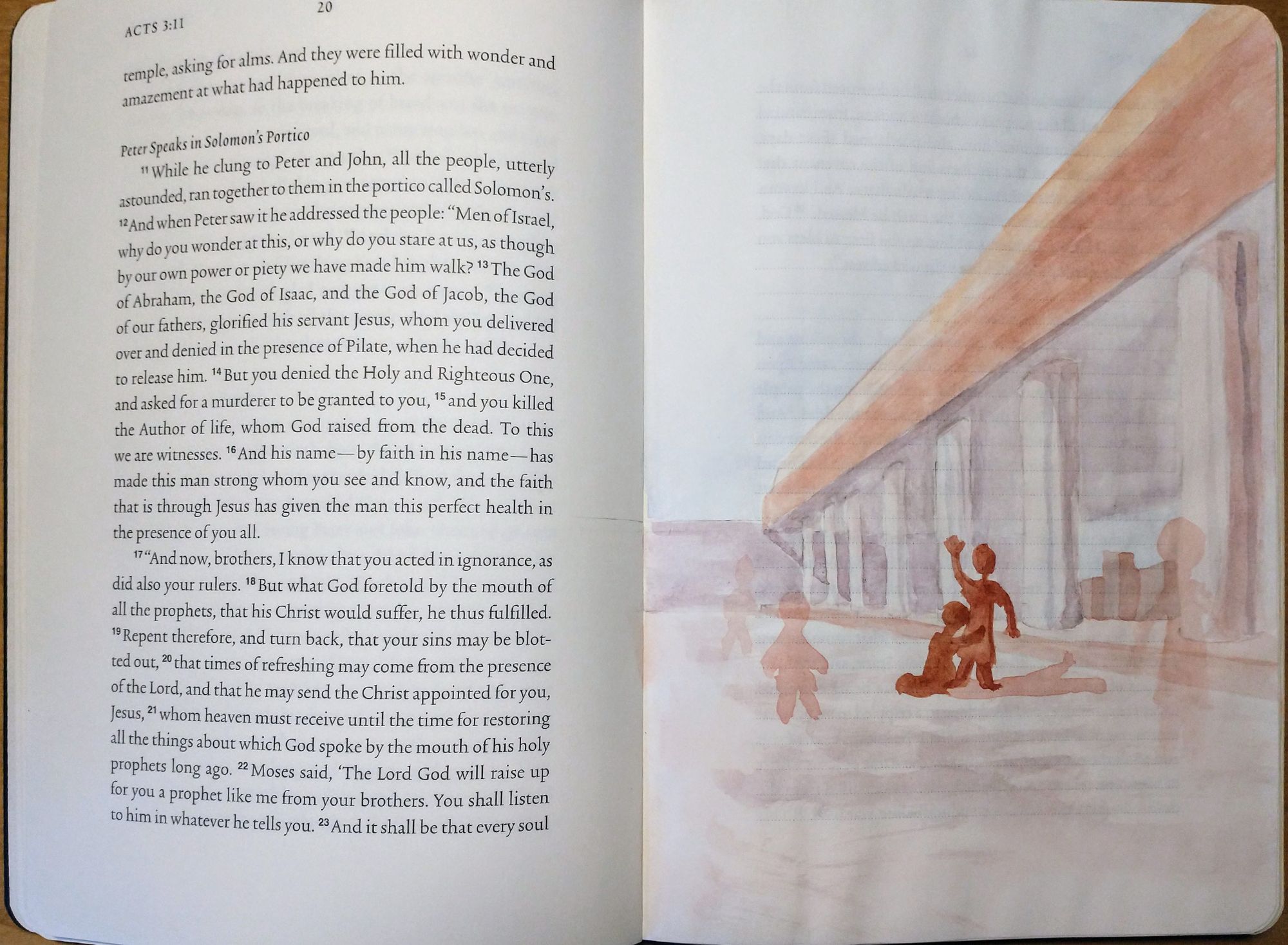 Remember that the most important lesson is the one you're learning right now. I purchased the book of Acts for the sole purpose of illuminating it myself. I'm no master artist, and I'm definitely not inspired in the same way as the 23 artists over 15 years who created the St. John's Bible, but I've been truly blessed by what I've learned just watercoloring in my little book.