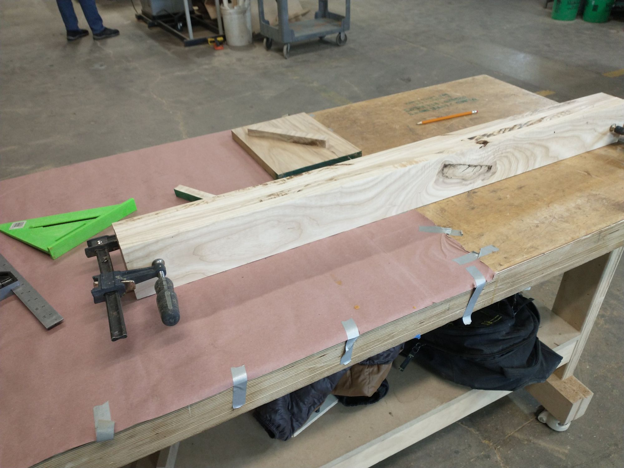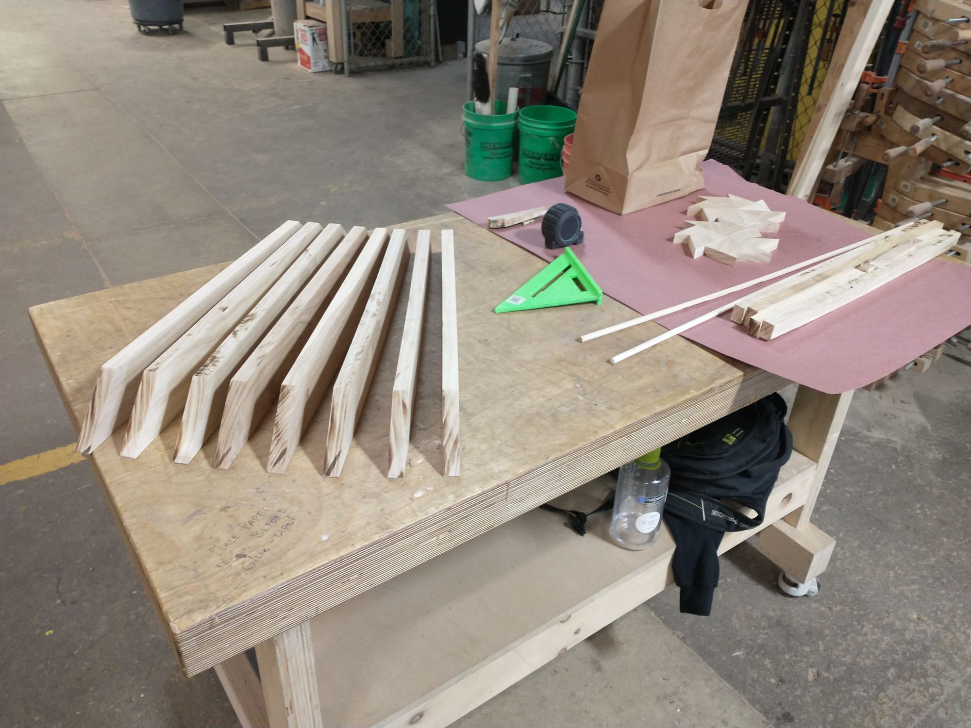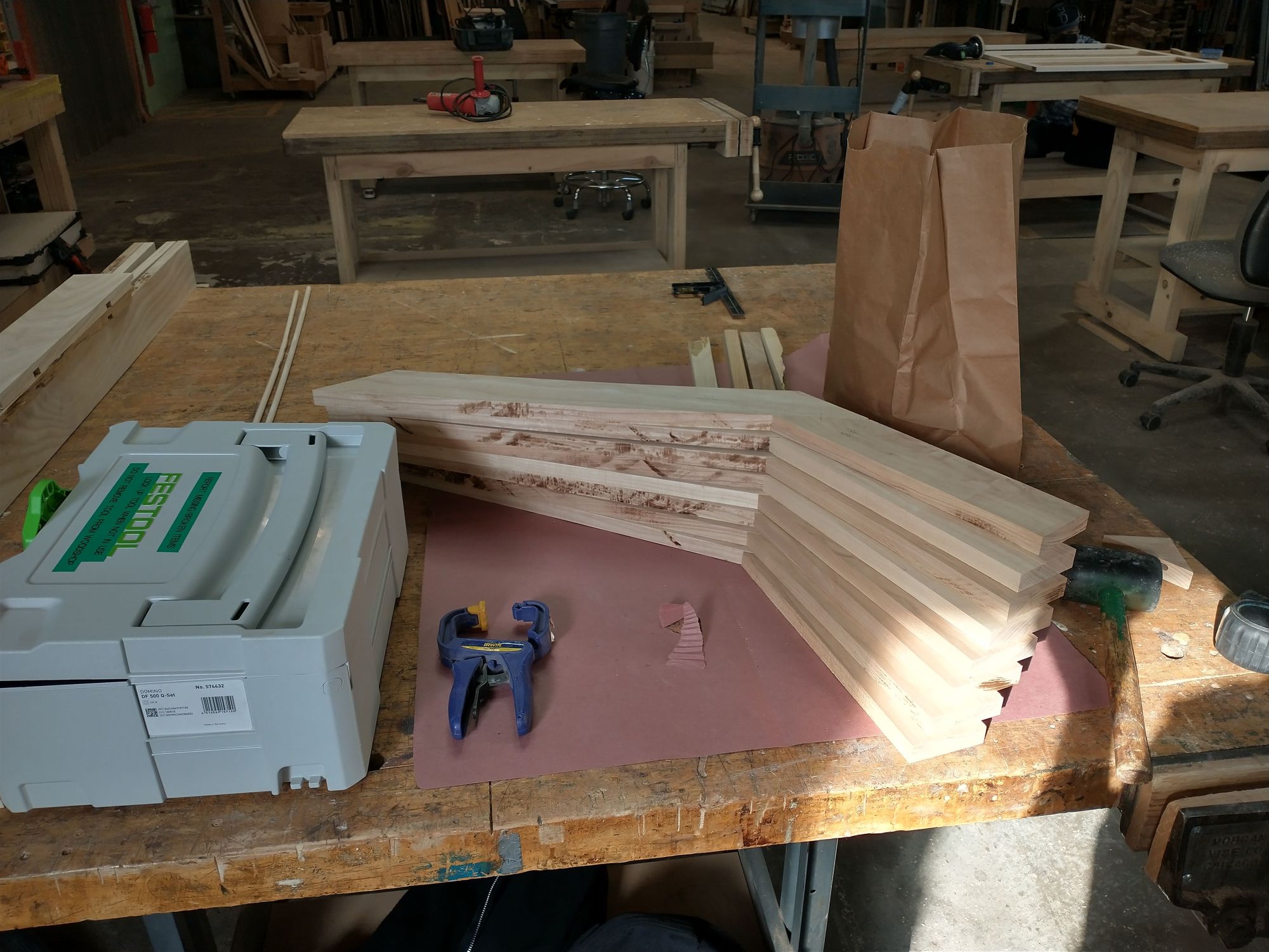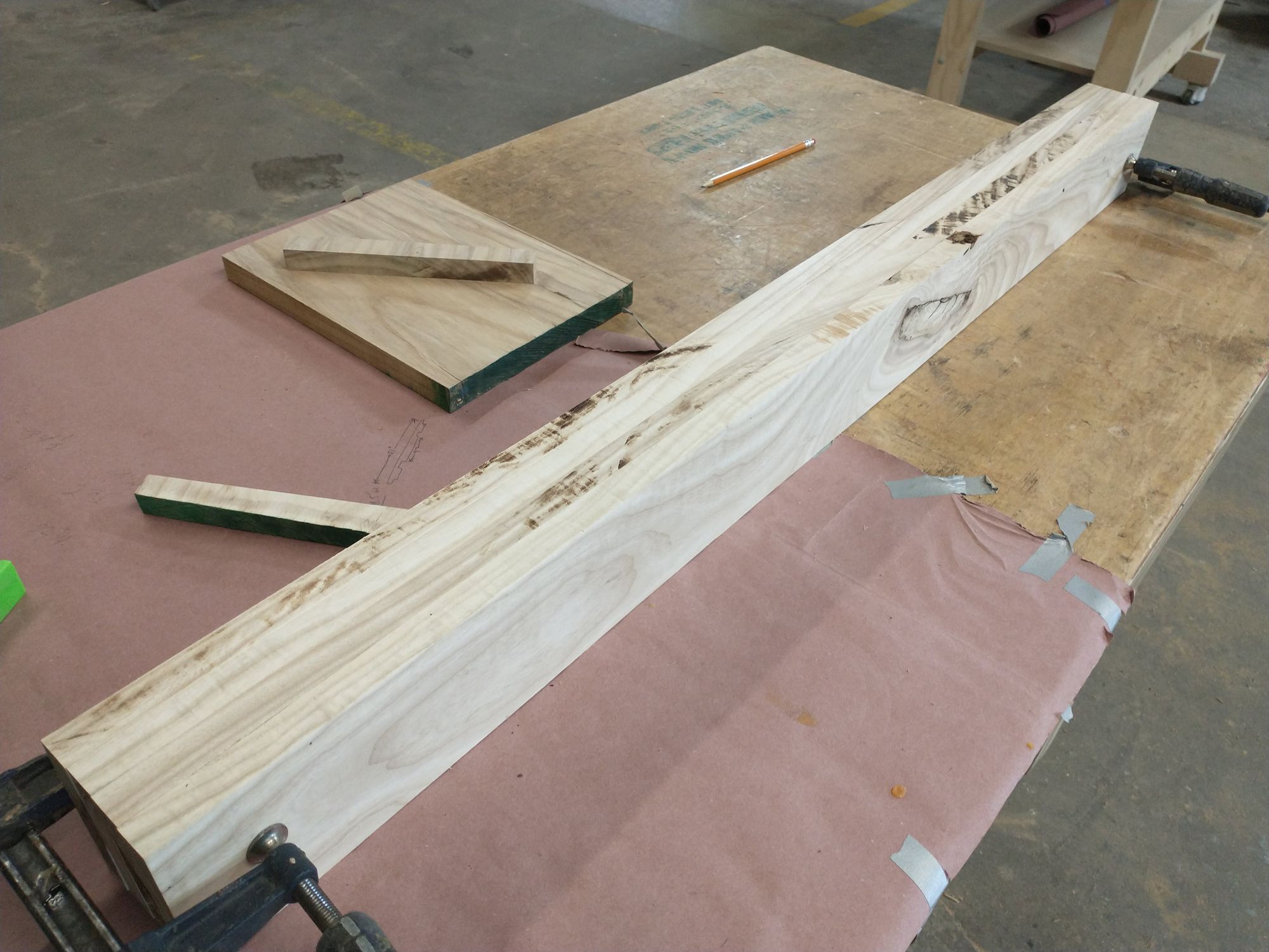 But in the meantime, take a moment to appreciate how many clamps it took to get these legs perfectly sandwiched together. Note especially that clamping these was a process in space and time. I had to put the clamps on in a specific order to make sure everything worked right.