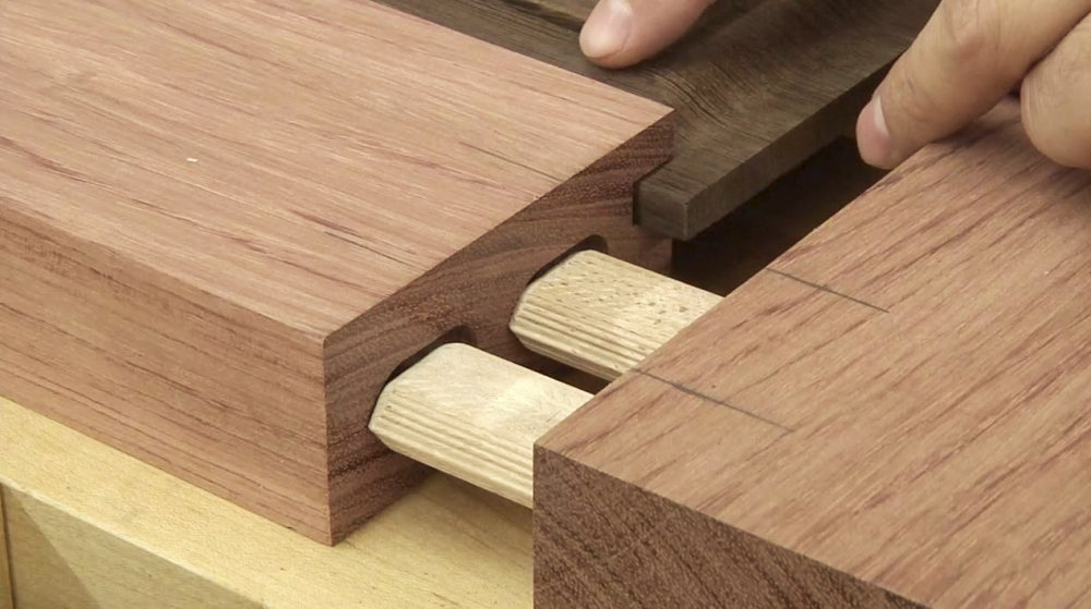 I used an awesome little tool that makes perfect mortises for floating tenons. In normal English, that just means it makes holes in the ends of boards so you can stick them together with a little block of wood. This type of joint is really, really strong. Here's a picture: