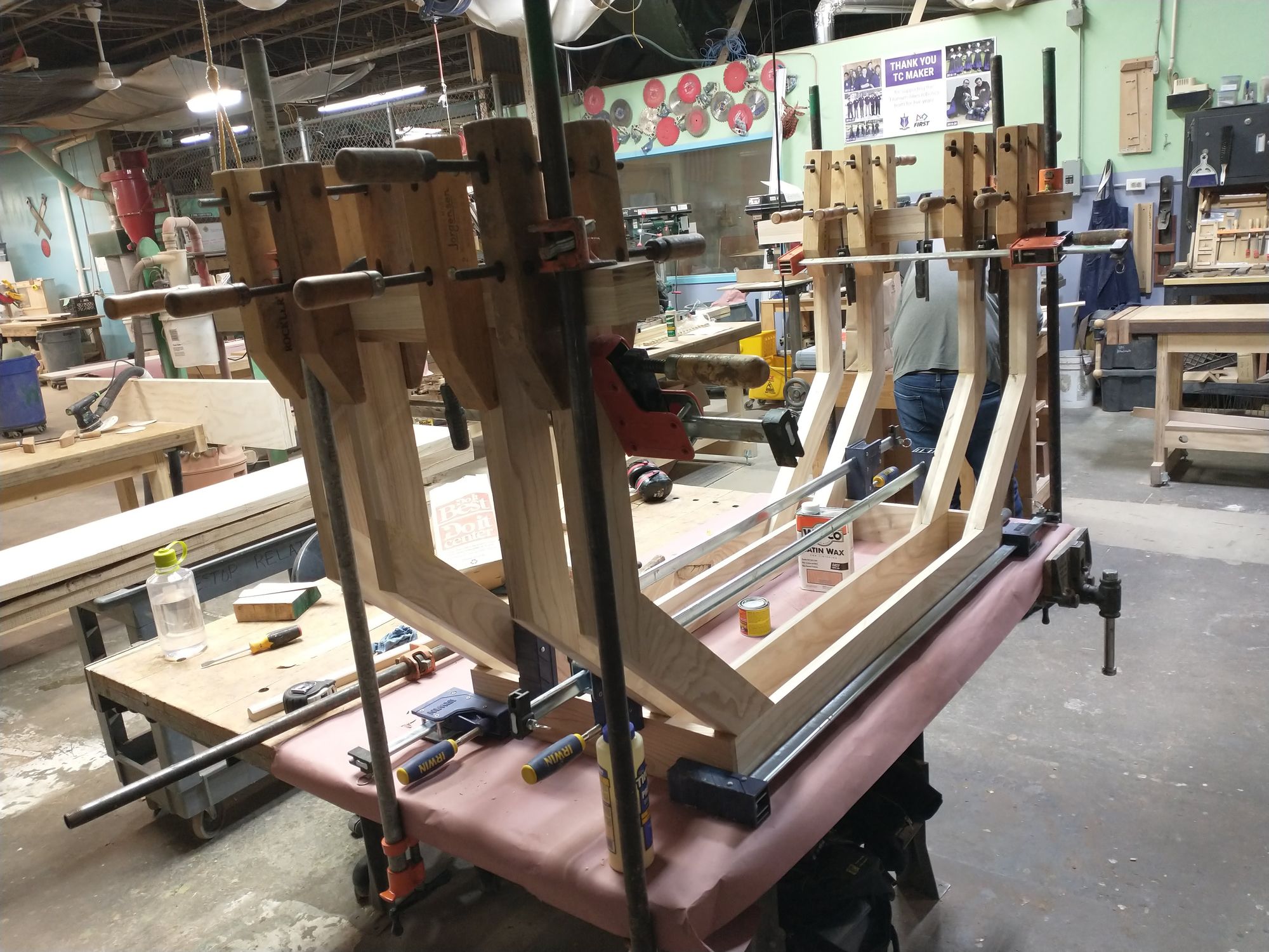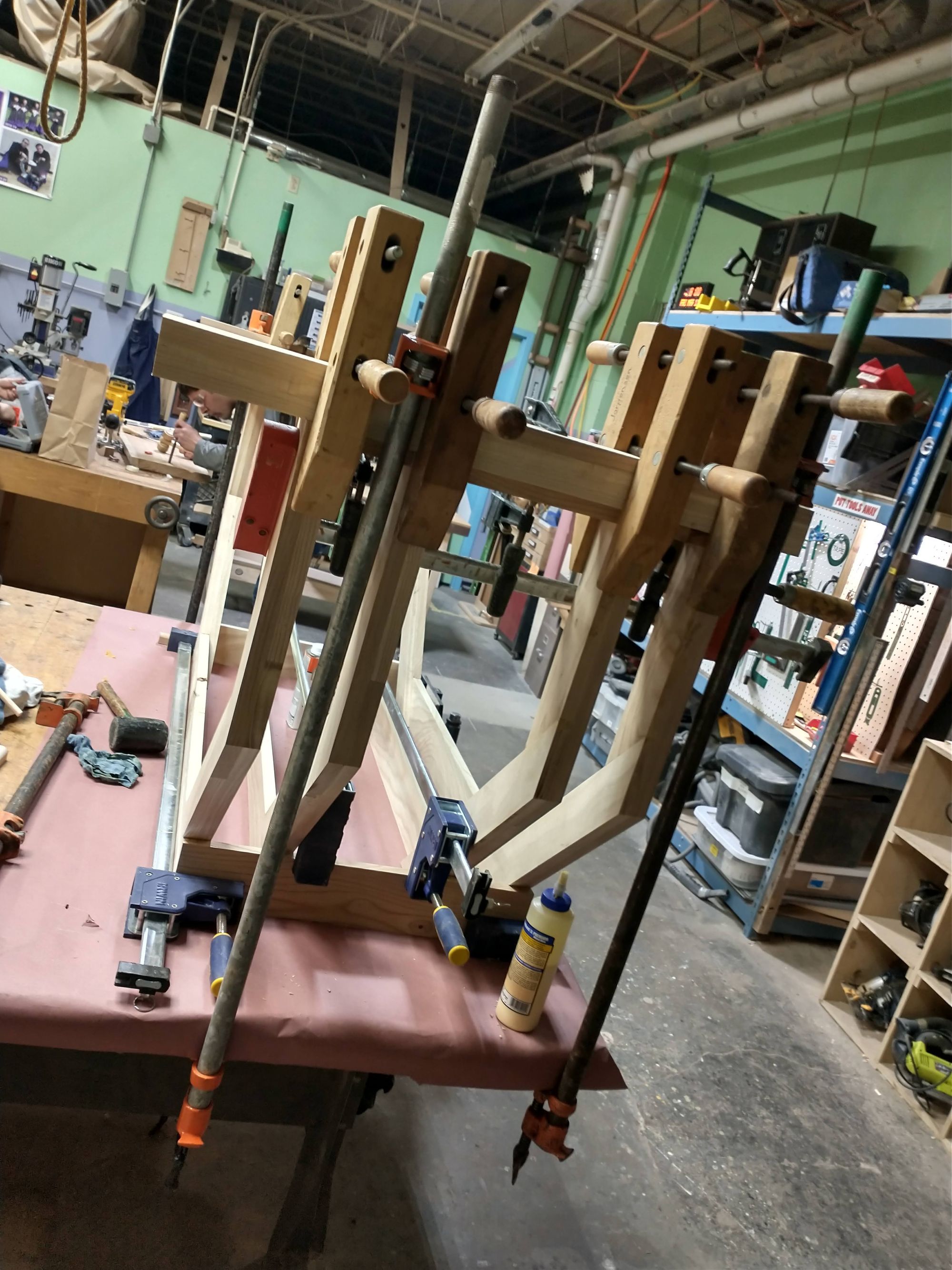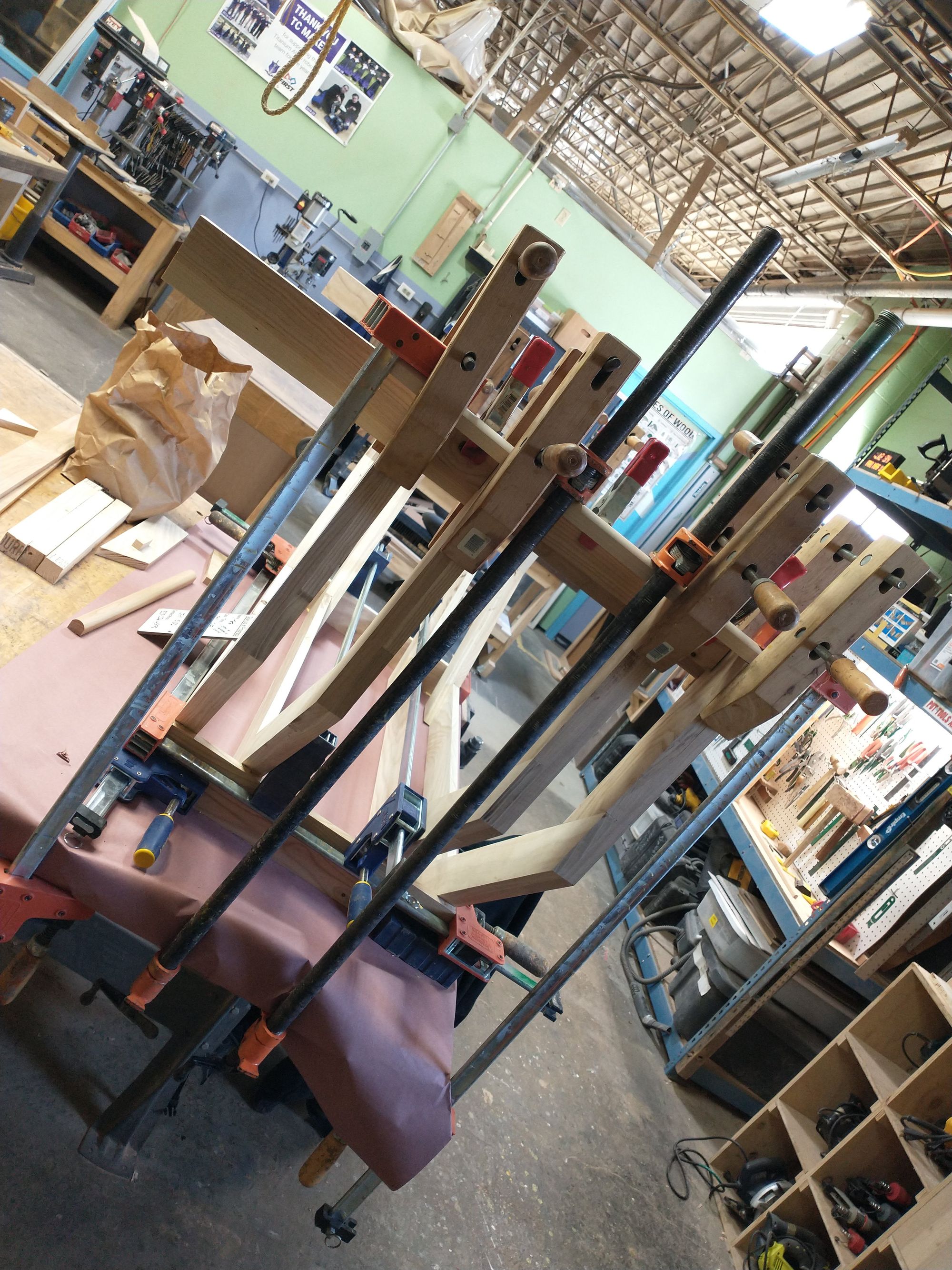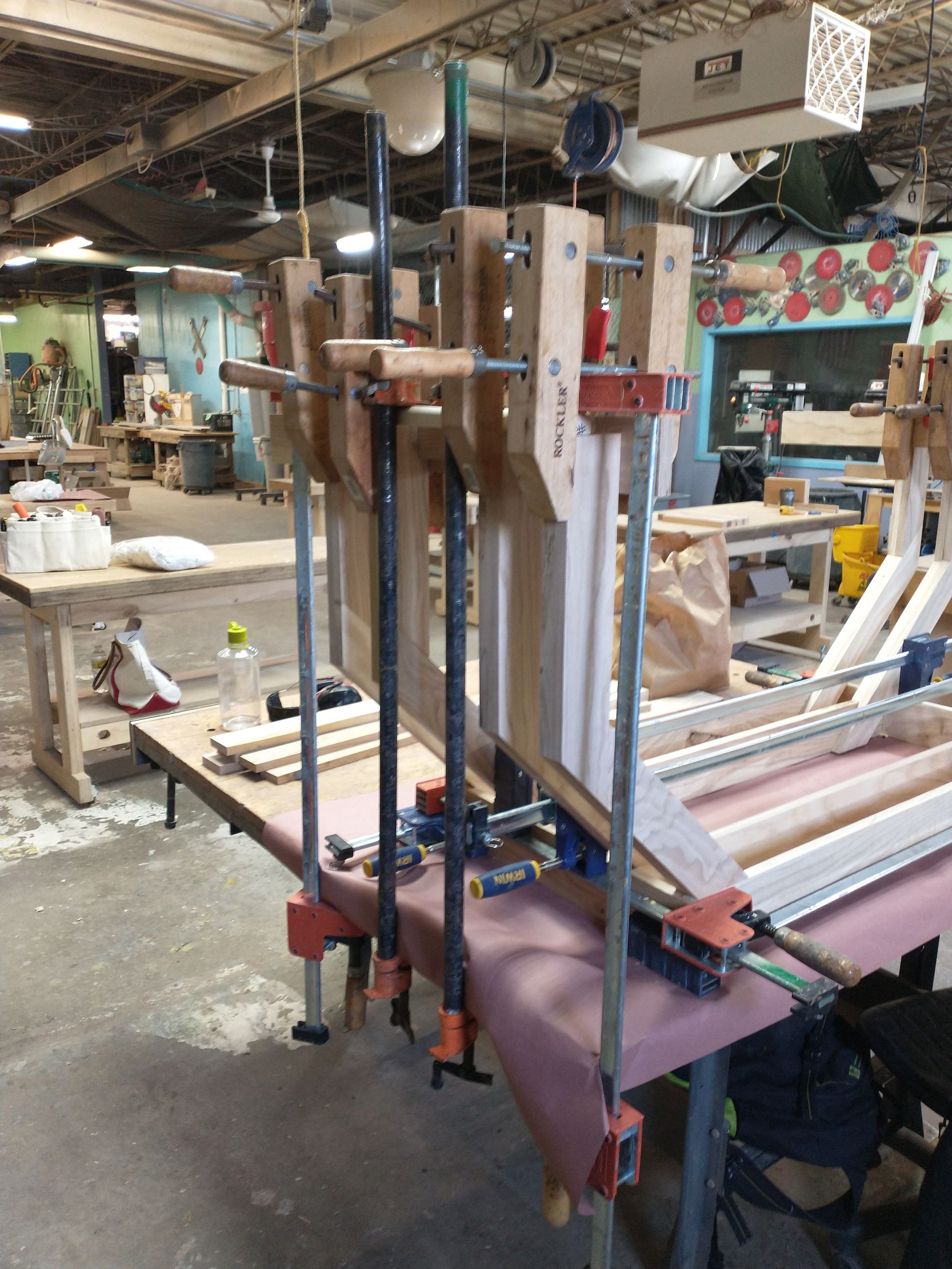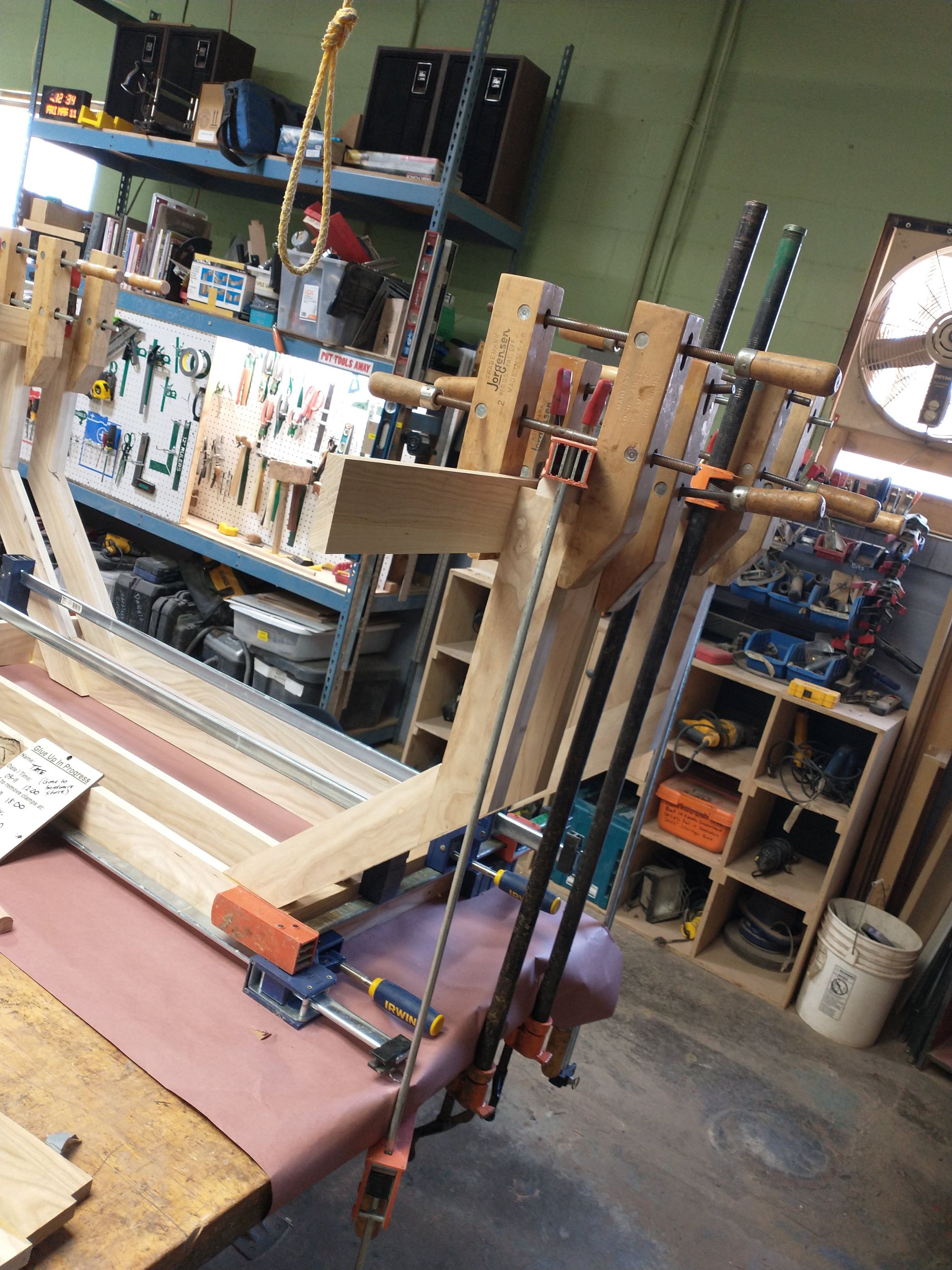 That's a lot of clamps, but it was worth it! If you look closely, you'll see that I snuck the feet onto the legs while you weren't looking!