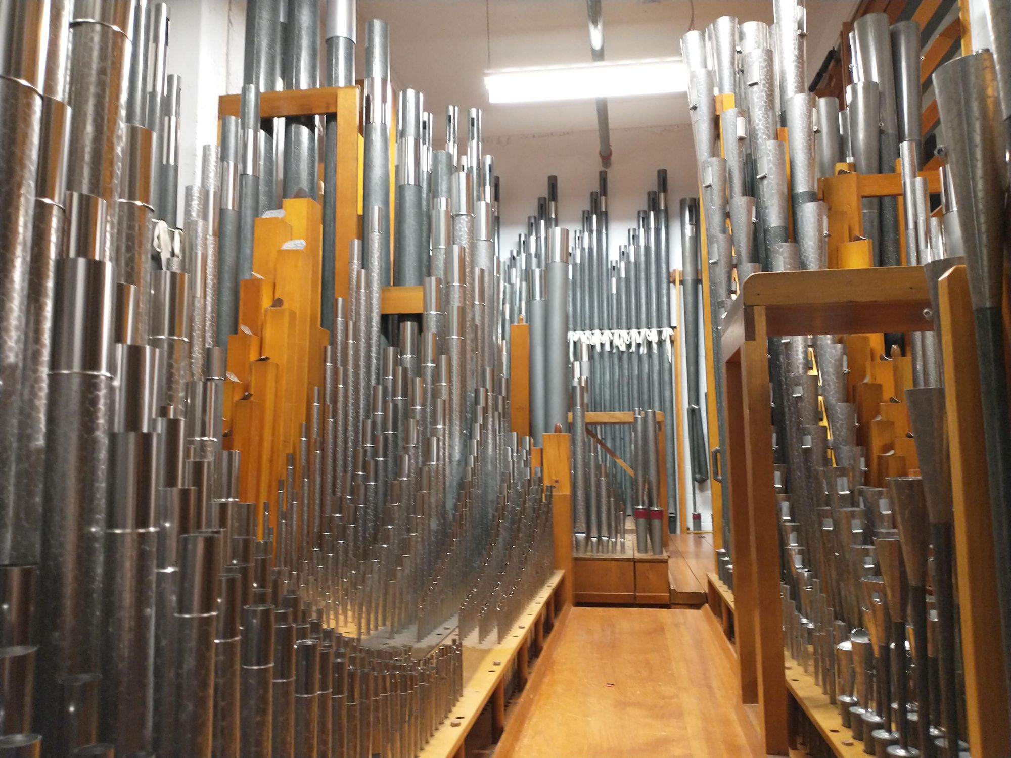 Many people don't realize that the part of the organ that has the keyboards and the bench doesn't actually produce any sound. Only the pipes in a pipe organ do that! Those pipes, however, are often really far away from the keyboards!