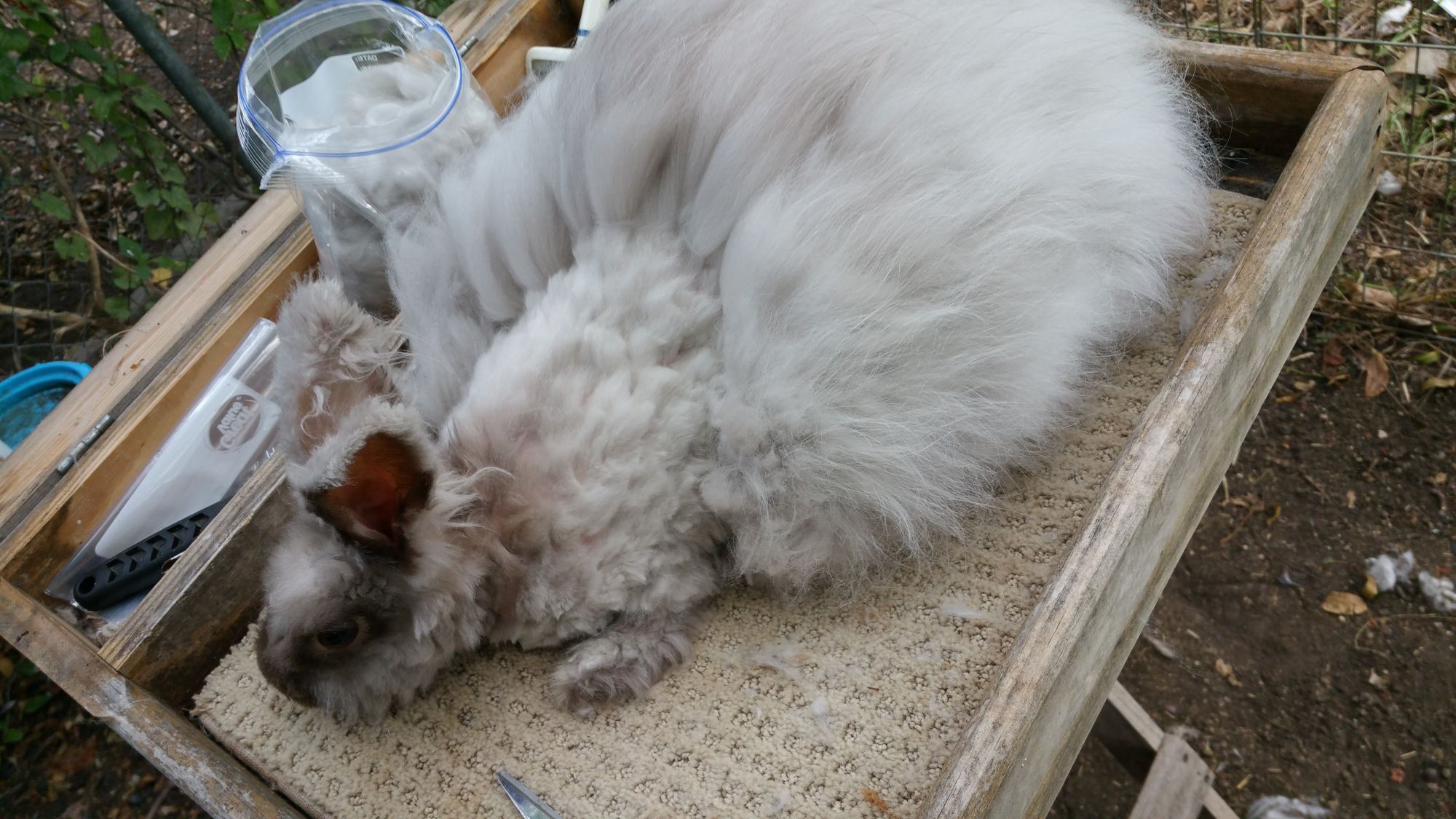 Normally, people don't shear Angora rabbits because they molt naturally, but since I lived in Texas I did it to help them keep cool!