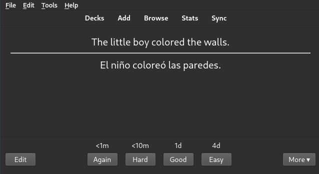 Now, the phrase "ir de paseo" doesn't translate literally into English, so it took me a lot longer to learn than words like, "vivir" or "dar" that I already knew from growing up in Sonora. Anki takes this into account!