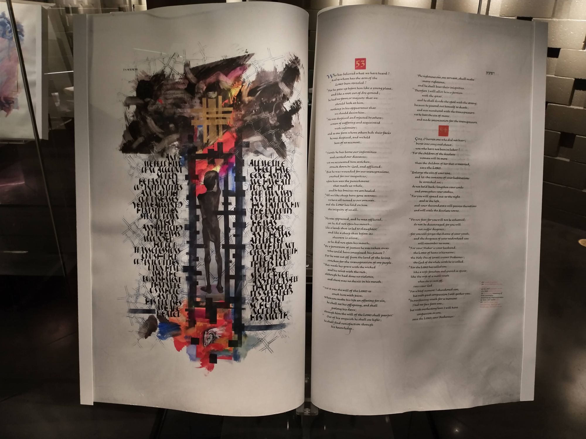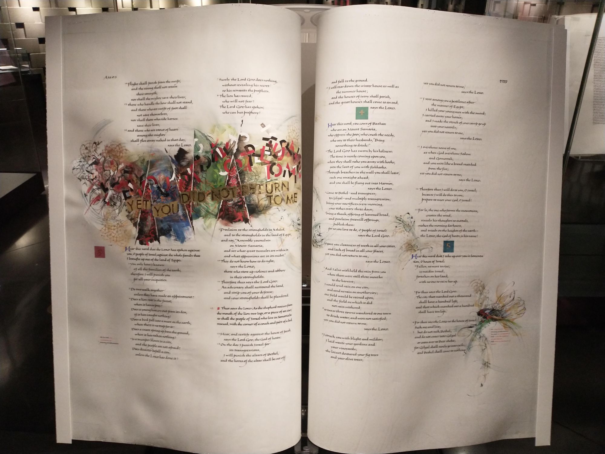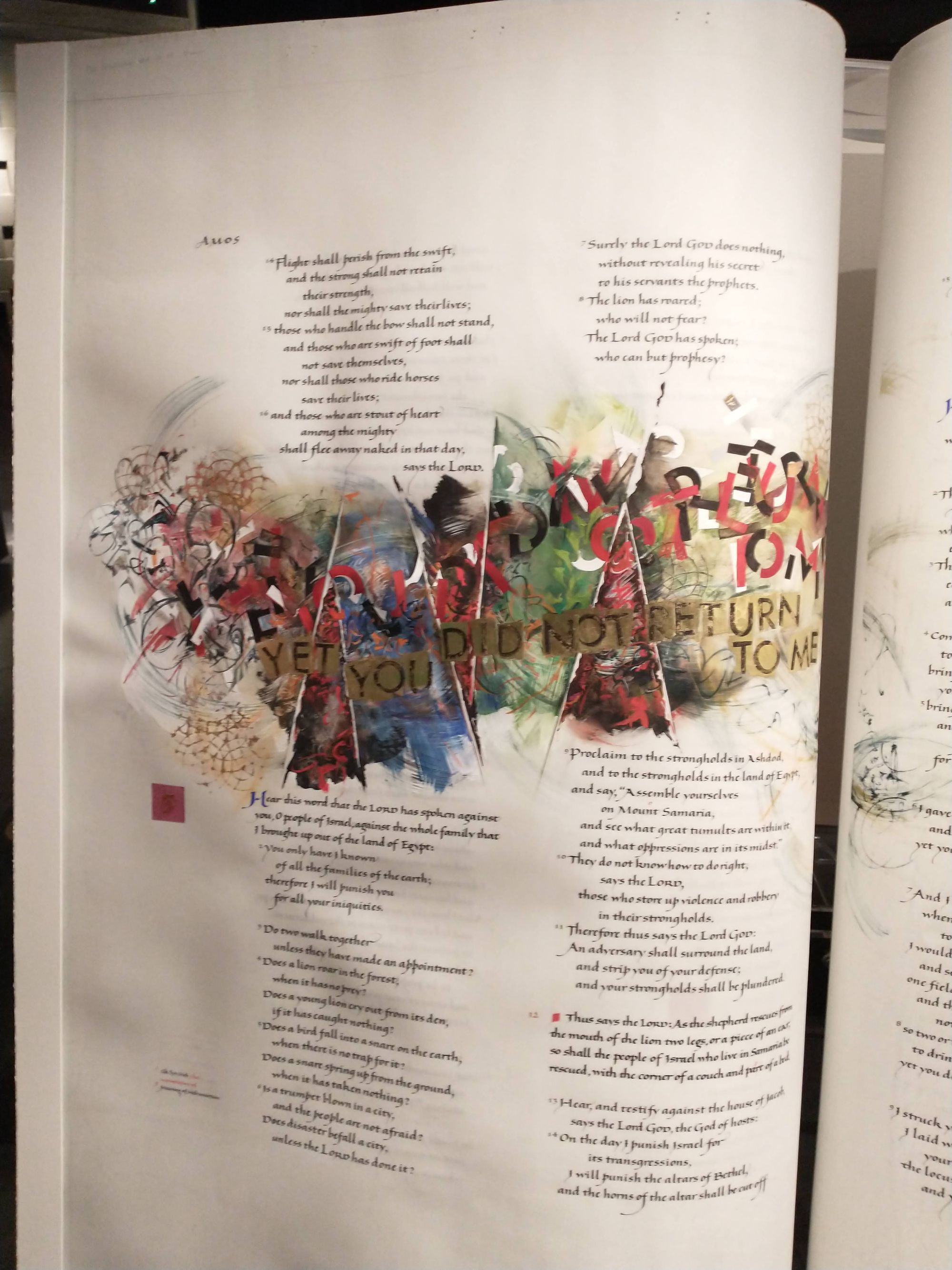 I won't have much to say in this post. I'll simply show you the pictures I took and some interesting things I learned while viewing the St. John's Bible at St. John's University.