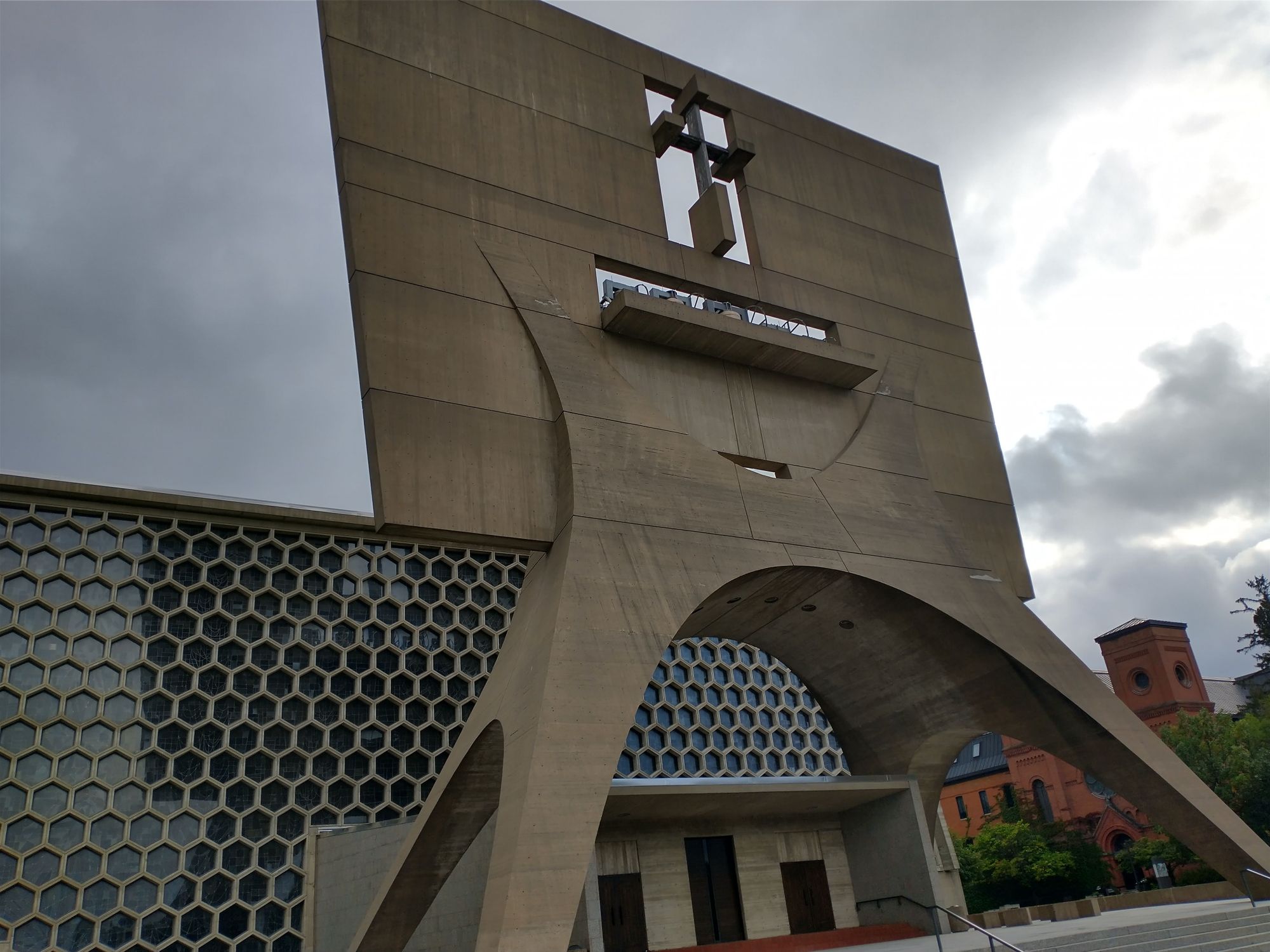 This is the abbey church. The honeycomb you see is actually supporting an entire wall of stained glass! There was a funeral going on during the time I was there, so I wasn't able to photograph the inside. This is the abbey church from a different angle.And here's what the residence halls look like. I was extremely impressed with the architecture.