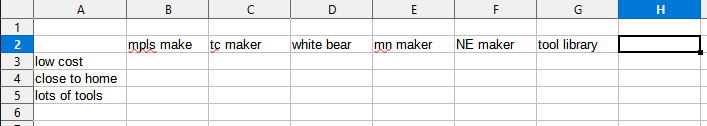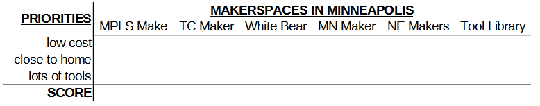 I'm trying to find the ideal makerspace in Minneapolis. I showed all the options I found in my previous post: